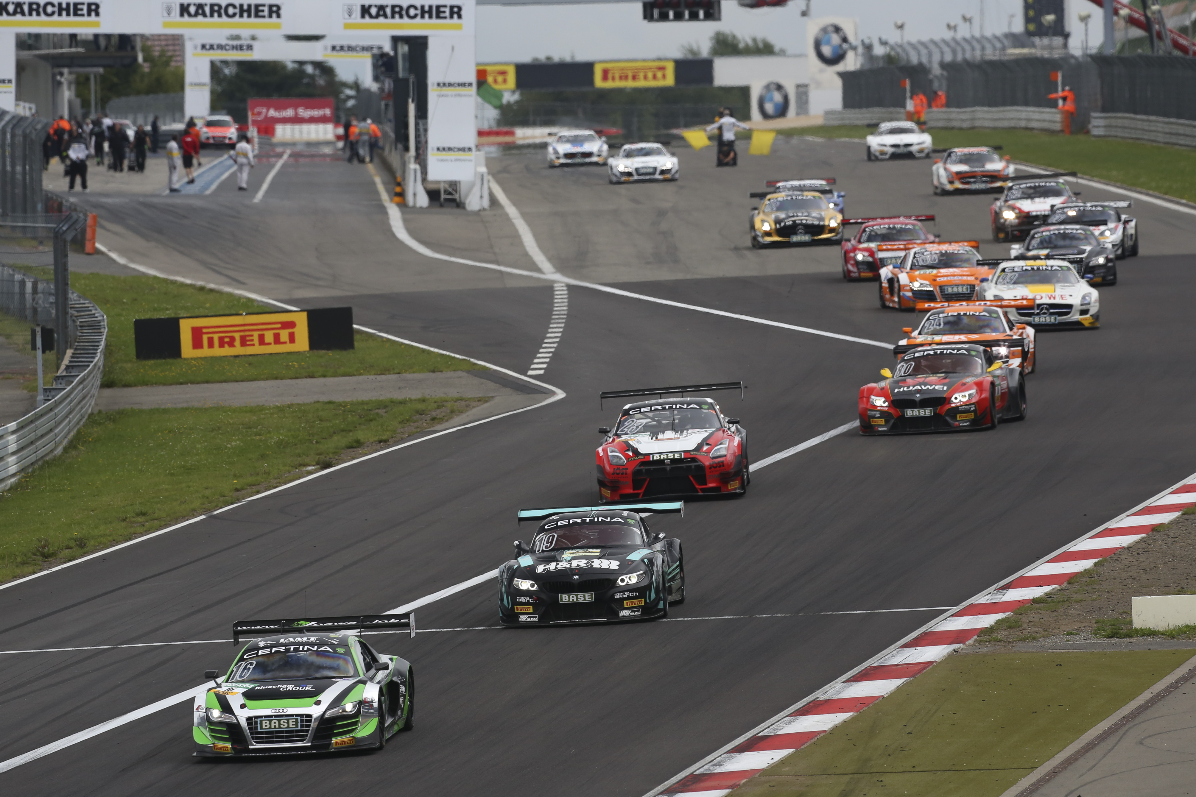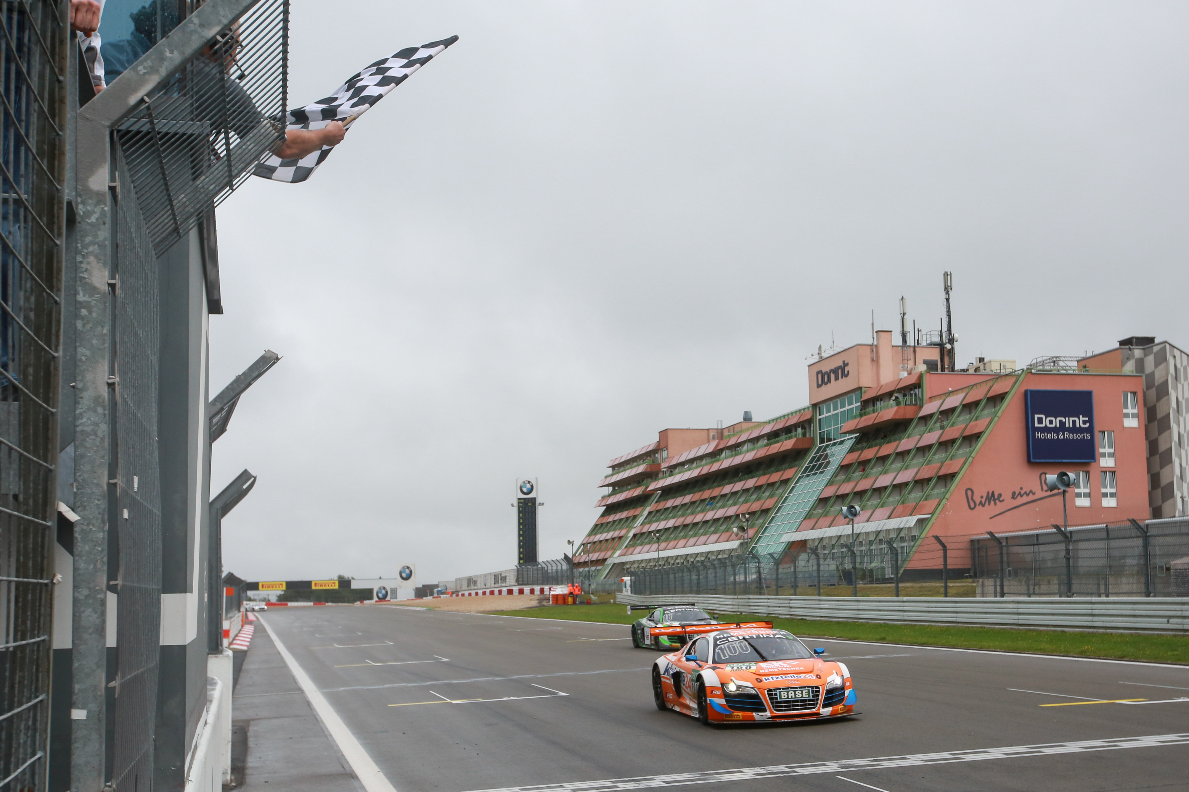 Frey and Geipel turned in a strong performance. The Audi duo decided not to switch tyres despite two showers of rain during the race and stayed out on slicks, a brave strategy which secured them second place. Fellow Audi drivers Stefan Wackerbauer (19, GER) & Kelvin van der Linde (19, ZA, both C.Abt Racing) were allocated P3. Hari Proczyk (39, AUT) & Bernd Schneider (51, CH, both HP Racing) in the Mercedes-Benz SLS AMG moved up into fourth position.
