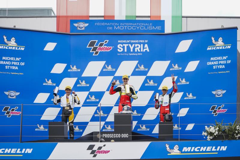 Spielberg. Die fünfte Station des Northern Talent Cup 2021 führte die Nachwuchstalente an diesem Wochenende nach Österreich, wo sie im Rahmen mit der MotoGP auf dem Red Bull Ring an den Start gingen. In einem spannenden ersten Rennen am Samstag setzte sich Rossi Moor (Mol Racing Fuel Junior Team, HUN) an der Spitze durch, während Kevin Farkas (Mol Racing Fuel Junior Team, HUN) den verregneten zweiten Lauf am Sonntag für sich entscheiden konnte.