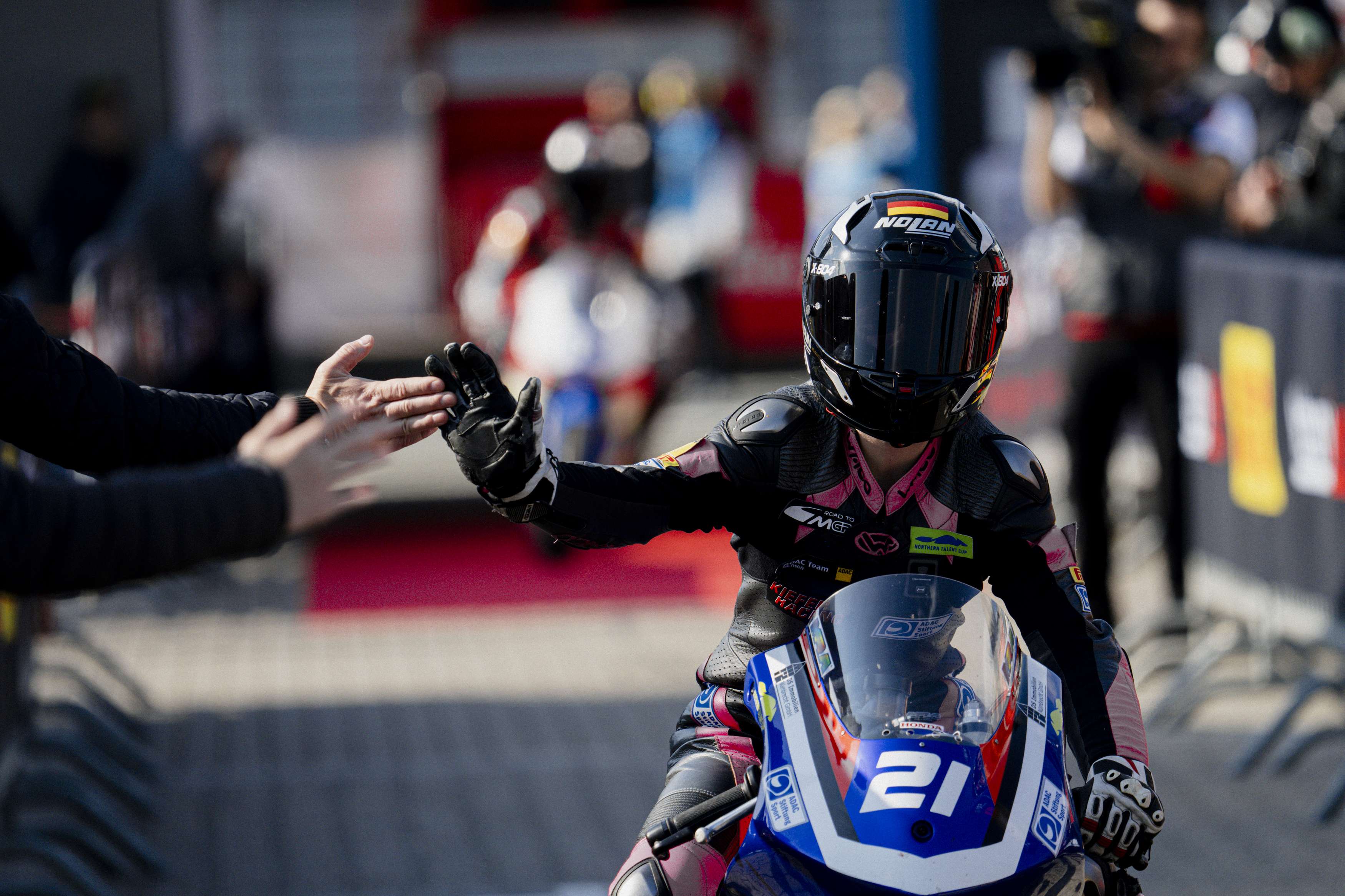Einen soliden Auftakt legte indes Robin Siegert hin. Der Rookie vom Team Motorace Academy Germany qualifizierte sich auf Position acht und zeigte ein starkes erstes Rennen, indem er bis auf Position fünf nach vorne fuhr, aber in der letzten Runde unglücklicherweise zu Boden ging. Im zweiten Rennen münzte er seine Startposition dann in einen guten achten Platz um. „Das war das erste Rennwochenende des NTC. Ich habe mich eigentlich ziemlich schnell reingefuchst. Die ersten zwei Trainings konnten wir viel probieren. Das Motorrad war für mich neu, wir haben viele Einstelllungen am Fahrwerk verändert. Das Qualifying lief dann gut und ich konnte alleine auf Platz acht durchfahren“, berichtet der 14-Jährige. „Der Start zum ersten Rennen war nicht ganz so gut, ich konnte aber recht schnell wieder aufholen und habe dann lange auf P5 gekämpft, bis ich in der letzten Runde in Kurve fünf stürzte“, ergänzt Siegert vom Team Motorace Academy Germany. „Im zweiten Rennen bin ich noch etwas schlechter gestartet, das müssen wir auf jeden Fall jetzt noch etwas trainieren. An sich war es aber ein sehr, sehr gutes erstes Rennwochenende. Ich hatte sehr viel Spaß dabei. Wir freuen uns schon auf Oschersleben, dort greifen wir dann richtig an“, verspricht er zum Schluss.