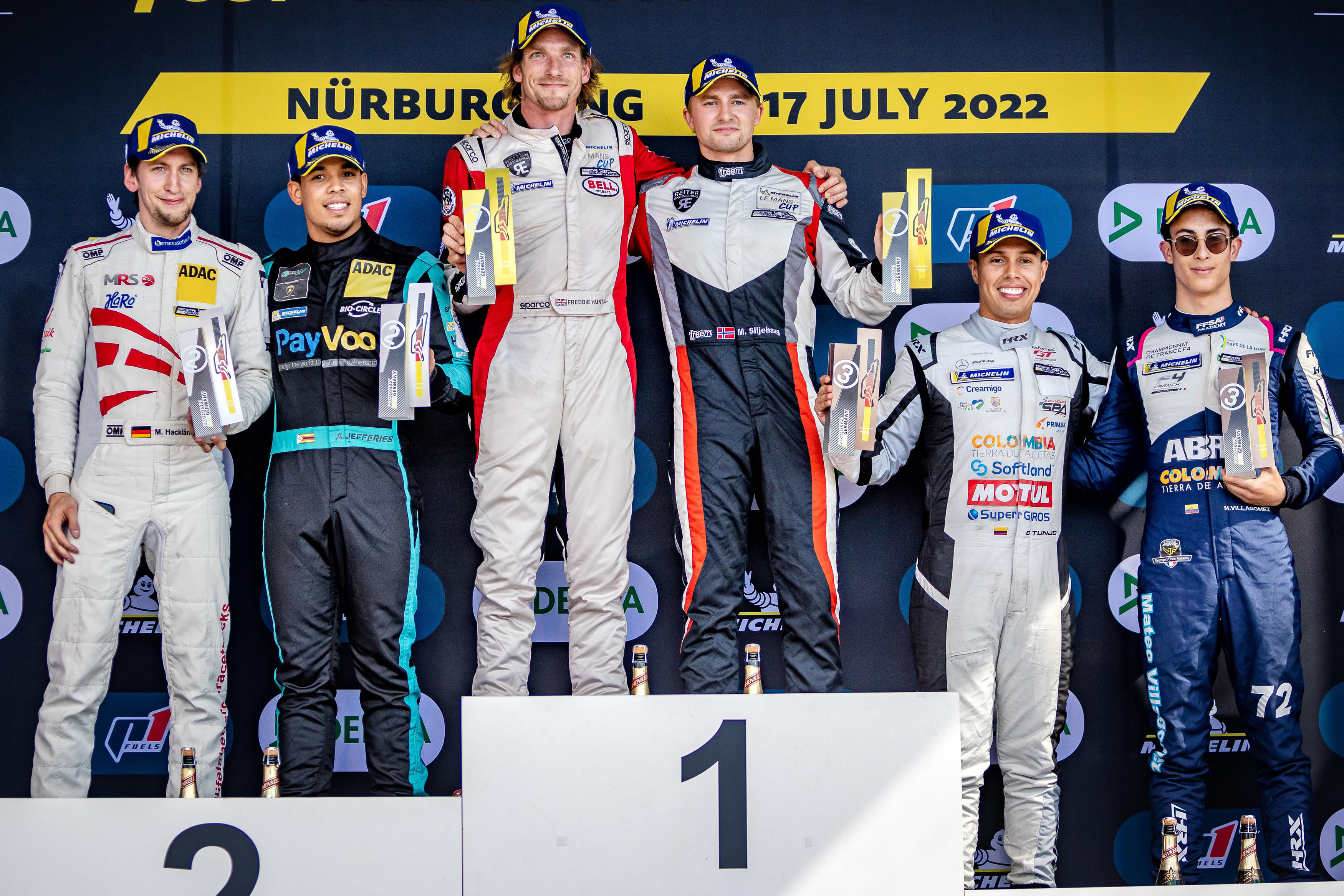 Auch Felipe Fernández Laser fuhr im Ligier noch an Villagomez vorbei, was ihm zusammen mit Abbelen Platz drei einbrachte. Hinter Villagomez, der auch die Junior-Wertung für sich entschied, belegten die beiden Duqueine-Duos Gary Hauser (30/LUX) und Sebastian von Gartzen (29/Butzbach, beide Racing Experience) sowie Matthias Lüthen (41/Hamburg) und Donar Munding (20/Stuttgart, beide Mühlner Motorsport) die Plätze fünf und sechs. Lüthen gewann somit auch die Trophy.Wertung. Die Top Acht komplettierten die zwei Ligier von Thibaut Ehrhart (20/FRA, Pegasus Racing) sowie von Giorgio Rosa (36/ITA) und Aleksey Chuklin (36/UKR, beide Speed Factory Racing).