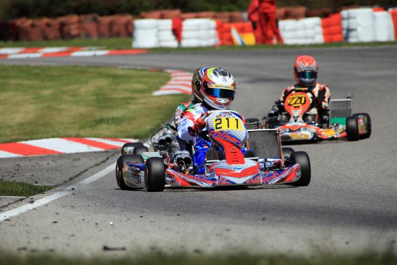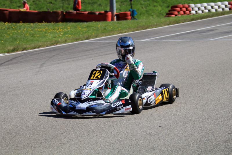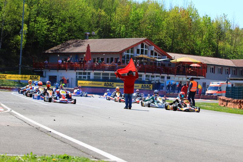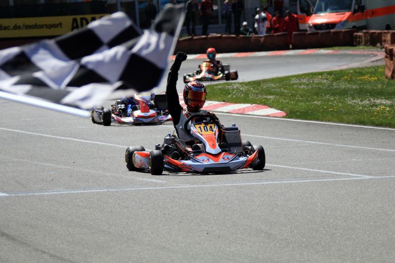 Josh Dufek (Altendiez/HTP Kart Team) eroberte nach einer blitzsauberen Vorstellung am Samstag die Favoritenrolle und knüpfte daran auch im ersten Finale an. Nach dem Start verteidigte er seine Führung. Die Konkurrenz ließ sich diesmal aber nicht so leicht abschütteln. Magnus Bockstette (Lemgo/Ostwestfalen-Lippe e.V.) nutzte eine Lücke und zog an Dufek vorbei. Der schaffte aber den Konter und fuhr nach 15 Runden als Sieger über den Zielstrich. Eine spätere zehn Sekundenstrafen schmälerte jedoch die Freude des HTP-Schützlings. In der Endabrechnung fand sich Daniel Gregor (Leinsweiler/Team Zinner) an der Spitze des Feldes wieder. Philipp Damhuis (Haren/Team Hemkemeyer) und Valentino Catalano (Westheim/Kali-Kart Stern Motorsport) komplettierten die Podestränge. Vierter und Fünfte wurden Marcel Schminke (Bad Wildungen/RMW Motorsport) und Claudia Henning (Waidhofen/DR Germany).