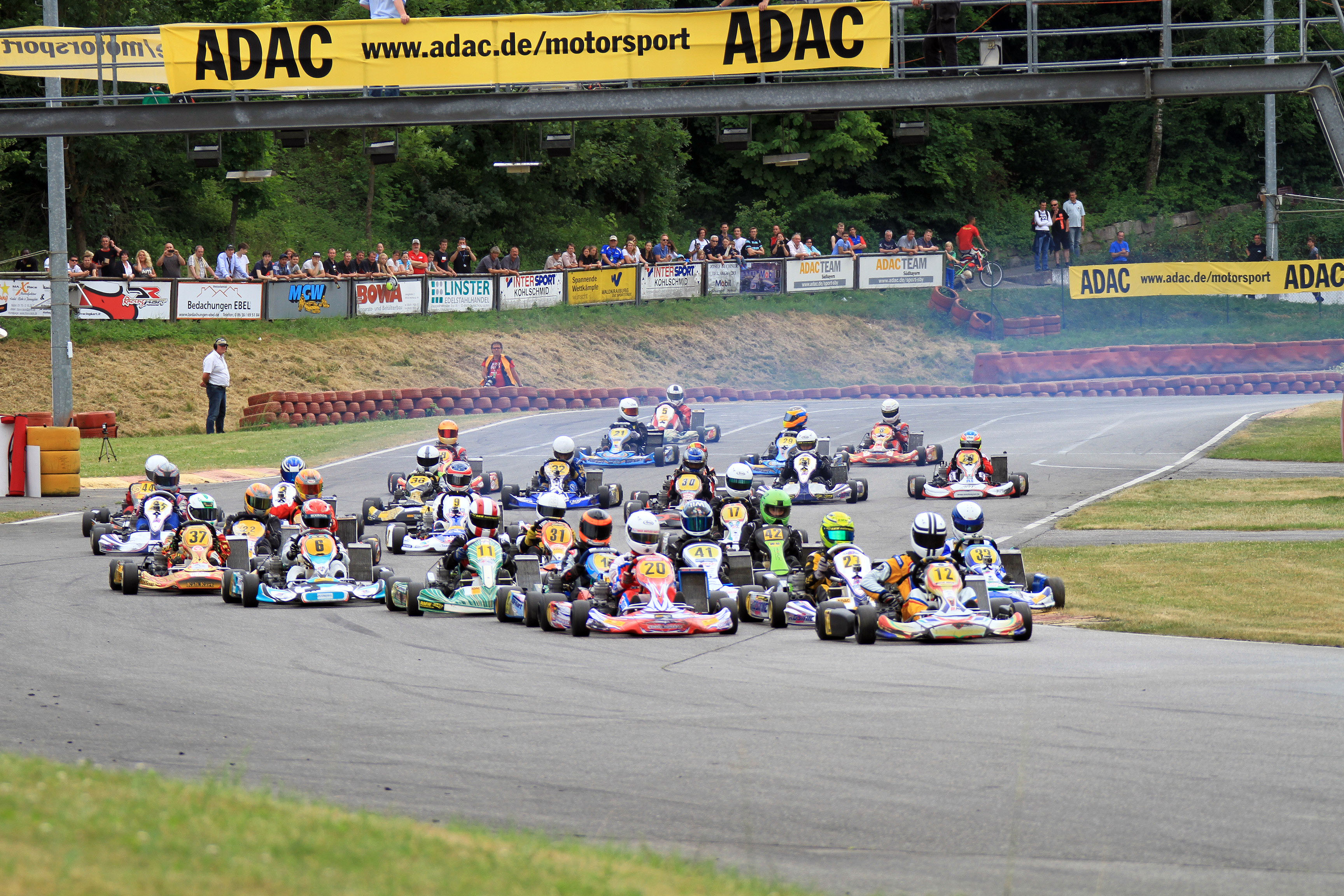 Wie im ersten Wertungslauf, schenkten sich die Jüngsten im Feld des ADAC Kart Masters auch im zweiten Lauf nichts. Eren Köse führte das Feld nach dem Start an, musste sich aber schon nach einem Umlauf Ghattas und Wankmüller geschlagen geben. Das Duo fuhr im Formationsflug an dem Krefelder vorbei. Mit schnellen Zeiten setzte sich nun Ghattas vom Feld ab, Wankmüller musste hingegen tief in die Trickkiste greifen, um seinen Platz nicht zu verlieren. Eng wurde es dann in den letzten fünf Runden. Zeitweise fuhren die Bambini nebeneinander durch die Kurven und tauschten im Sekundentakt ihre Positionen. Beim Fallen der Zielflagge behauptete sich Zamula auf Rang zwei gefolgt von Köse, Mohr und Wankmüller. Die spätere Disqualifikation von Köse ließ seine Kontrahenten vorrücken. Neuer Fünfter war Tim Tröger (Plauen/Solgat Motorsport). Ungeachtet der ganzen Ereignisse im Verfolgerfeld eroberte Doureid Ghattas mit seinem zweiten Sieg die Gesamtführung. „Ich hatte im zweiten Rennen einen schlechten Start, konnte mich aber schnell zurückkämpfen und später meine Führung ausbauen. Nun möchte ich bis zum Finale in Wackersdorf meine Position nicht mehr aus der Hand geben“, blickte der Bonner schon in die Zukunft.