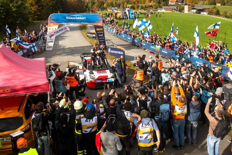 Thousands of fans celebrate the arrival of world champion Kalle Rovanperä at the finish in Breitenberg (Photo: Red Bull Content Pool)