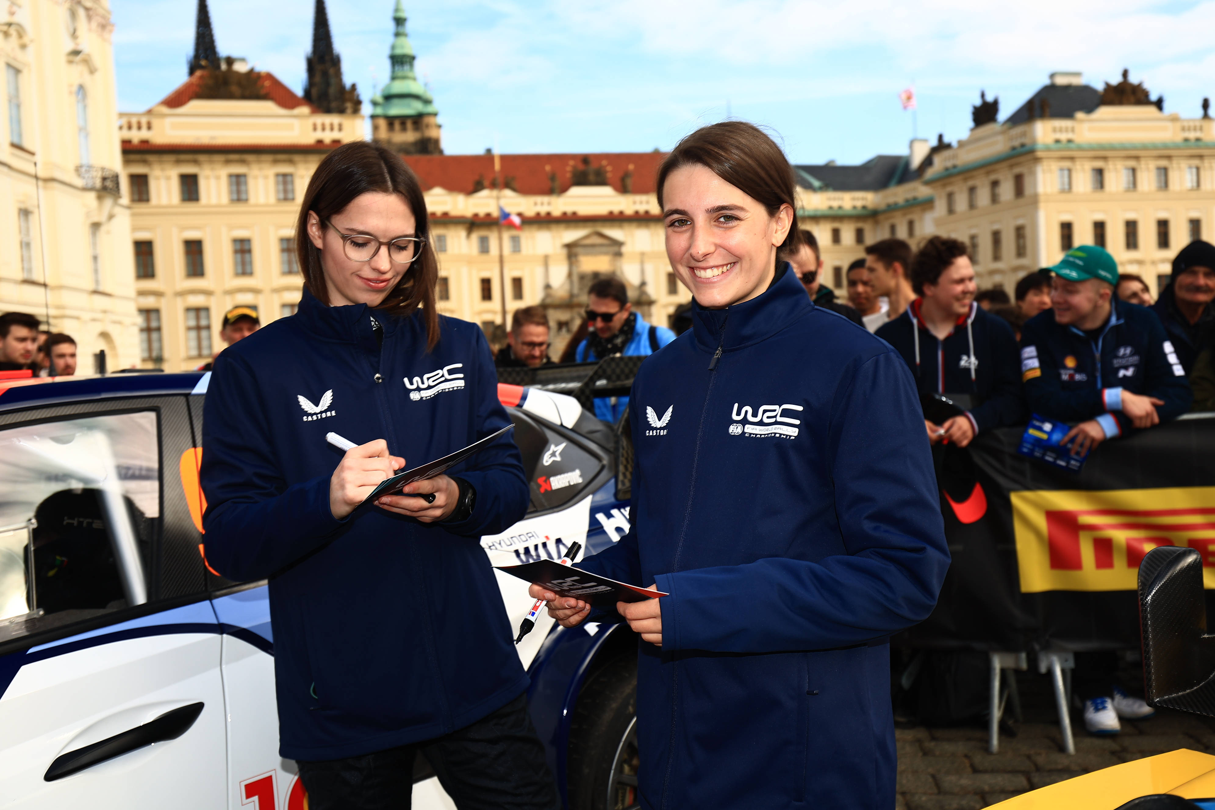 Nachdem sie bei der Central European Rallye beeindruckende Leistungen gezeigt haben, werden die Finalistinnen des Beyond Rally Women's Driver Development Programme, Lyssia Baudet (2. v. r.) und Claire Schönborn (2. v. l.), die nächstjährige WRC Rally Schw