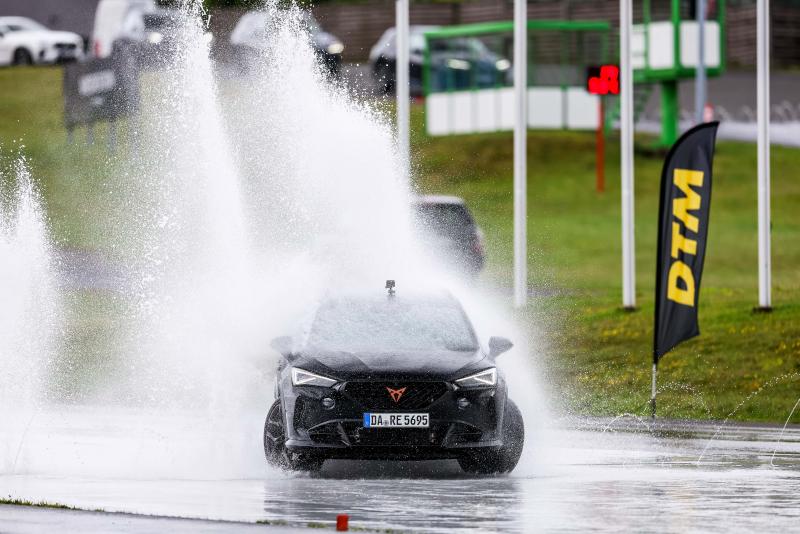 Patric Niederhauser, Dennis Olsen, Clemens Schmid and Luca Stolz were put through their paces as early as Thursday. At the Driver Safety Centre Nürburgring, the DTM drivers had to show that they have perfect control of their cars off the track, as well as on it. The training programme included a skills test on a narrow course, which Niederhauser dominated. At the end of the session, the DTM stars did some drifting on a wet surface across a hydraulically operated skid plate, completed with water fountains that suddenly appeared from nowhere. “That was a great start to the event at the Nürburgring, and I really enjoyed driving the Porsche 911 GT3 with the Manthey Kit. I was a bit nervous at first, but then it was just pure fun. The wet track was also perfect preparation for what awaits us here in the Eifel Mountains,” said Olsen.