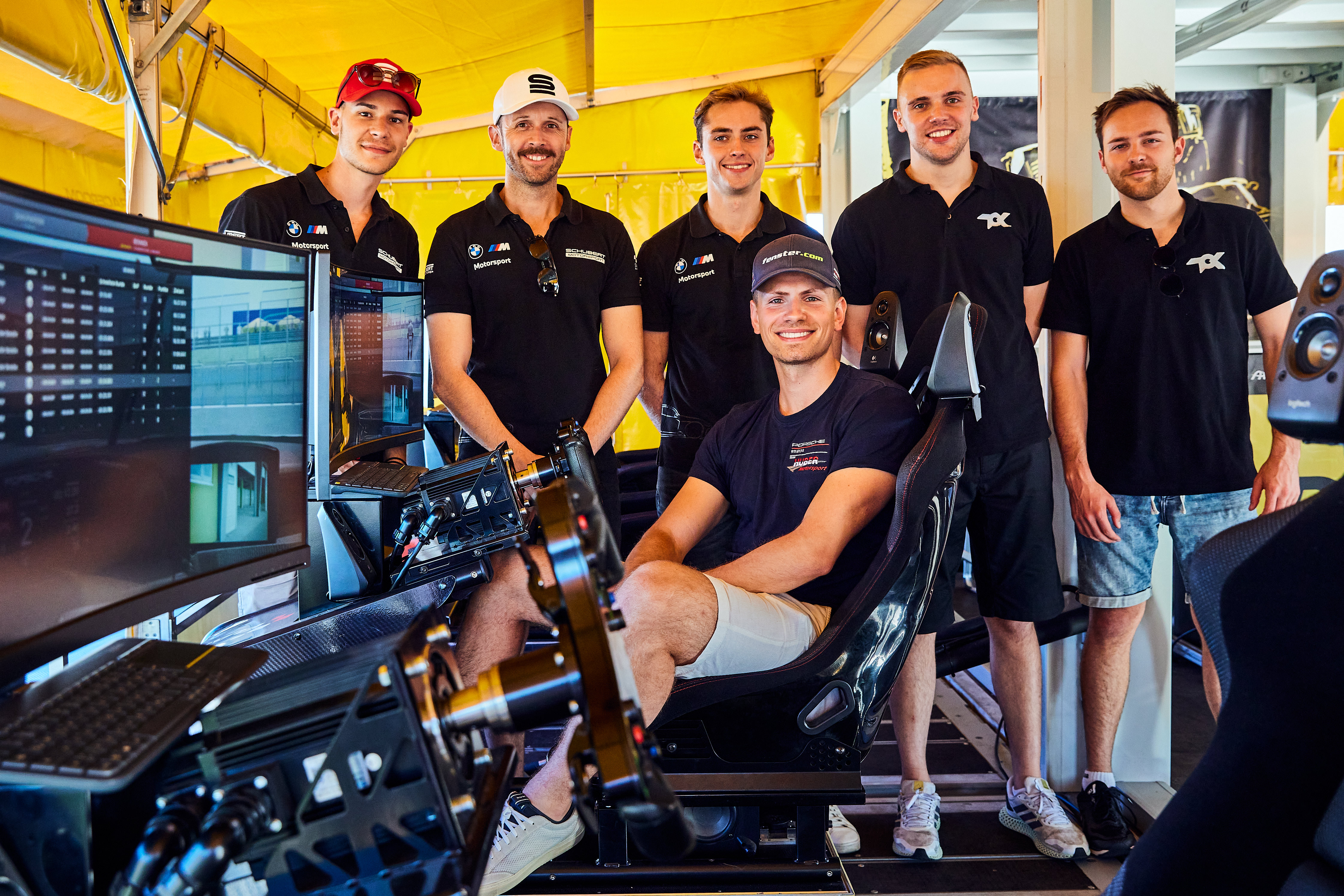 There was a high-quality showdown in the RaceRoom simulators in the DTM Fan Zone on Friday. DTM racers René Rast, Sheldon van der Linde, Marvin Dienst, Sandro Holzem and Tim Heinemann lined up in their respective cars at the virtual Sachsenring, as did ADAC GT Masters Ben Green and Nico Menzel. The professionals faced two visitors from the IAA, who had qualified for this virtual race at the internationally renowned motor show in Munich. Ben Green ultimately emerged triumphant against strong opposition. “That was a cool competition. However, I still have the most fun on the actual racetrack,” said the winner.