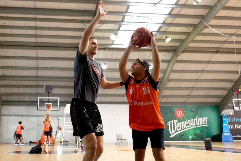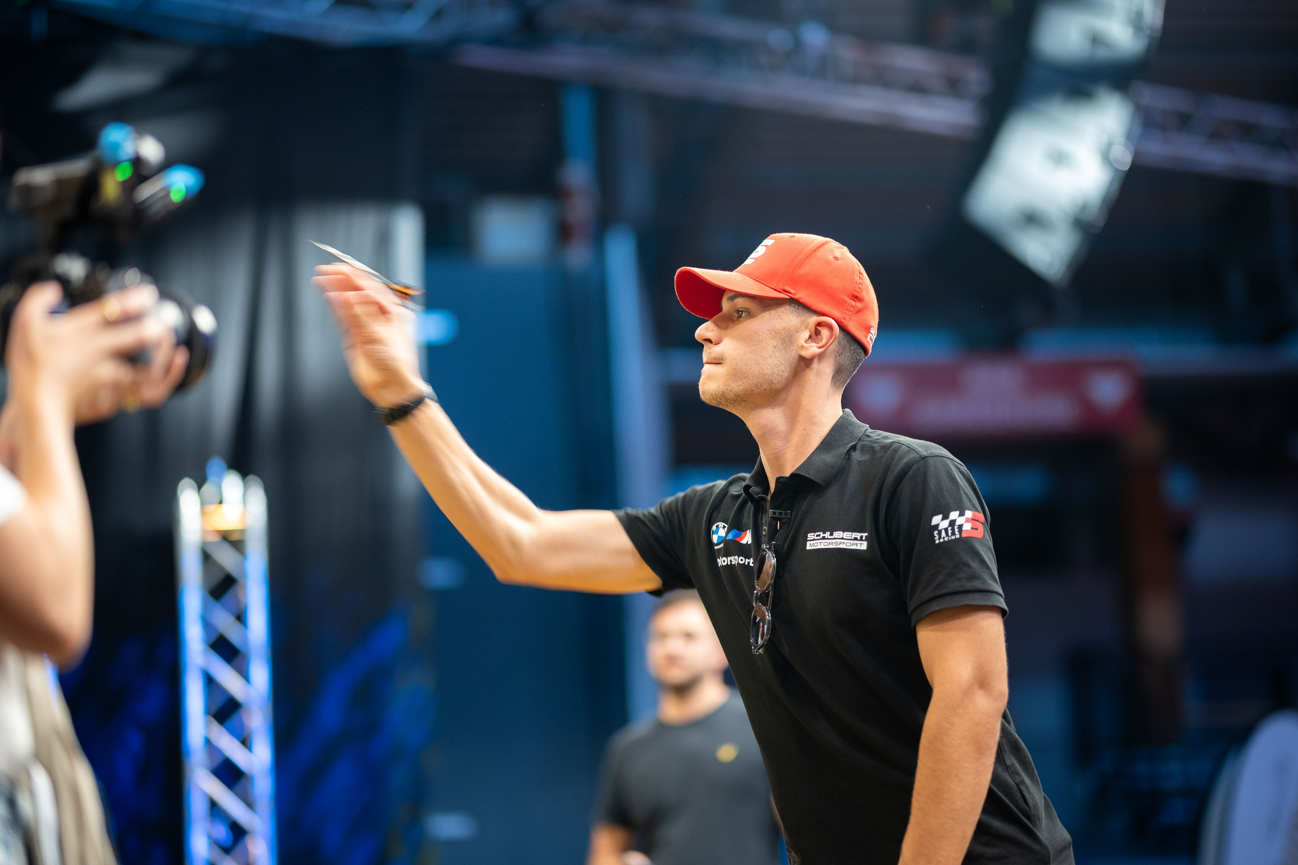 Before the return to the Sachsenring, after a 21-year absence, four DTM drivers tried their hand at different sports on Thursday. Ayhancan Güven and Franck Perera were at basketball Bundesliga club NINERS Chemnitz, where they went head to head in a two-against-two match, ably assisted by center Kevin Yebo and German international and club captain Jonas Richter. Perera, a basketball beginner, impressed with his sheer level of commitment. Güven, a passionate basketballer, demonstrated some remarkable skills and won the contest. Meanwhile, Würzburg’s Laurin Heinrich and South African brothers Kelvin and Sheldon van der Linde demonstrated their accuracy with much smaller equipment at the German Darts Open in Jena, which forms part of the European Darts Tour. However, the trio did not have a chance against Gabriel Clemens, who sensationally became the first German to reach the semi-finals of the darts world championship at the start of the year. The darts ace said diplomatically: “Everyone had a lot of fun. However, you only really recognise talent later on.”