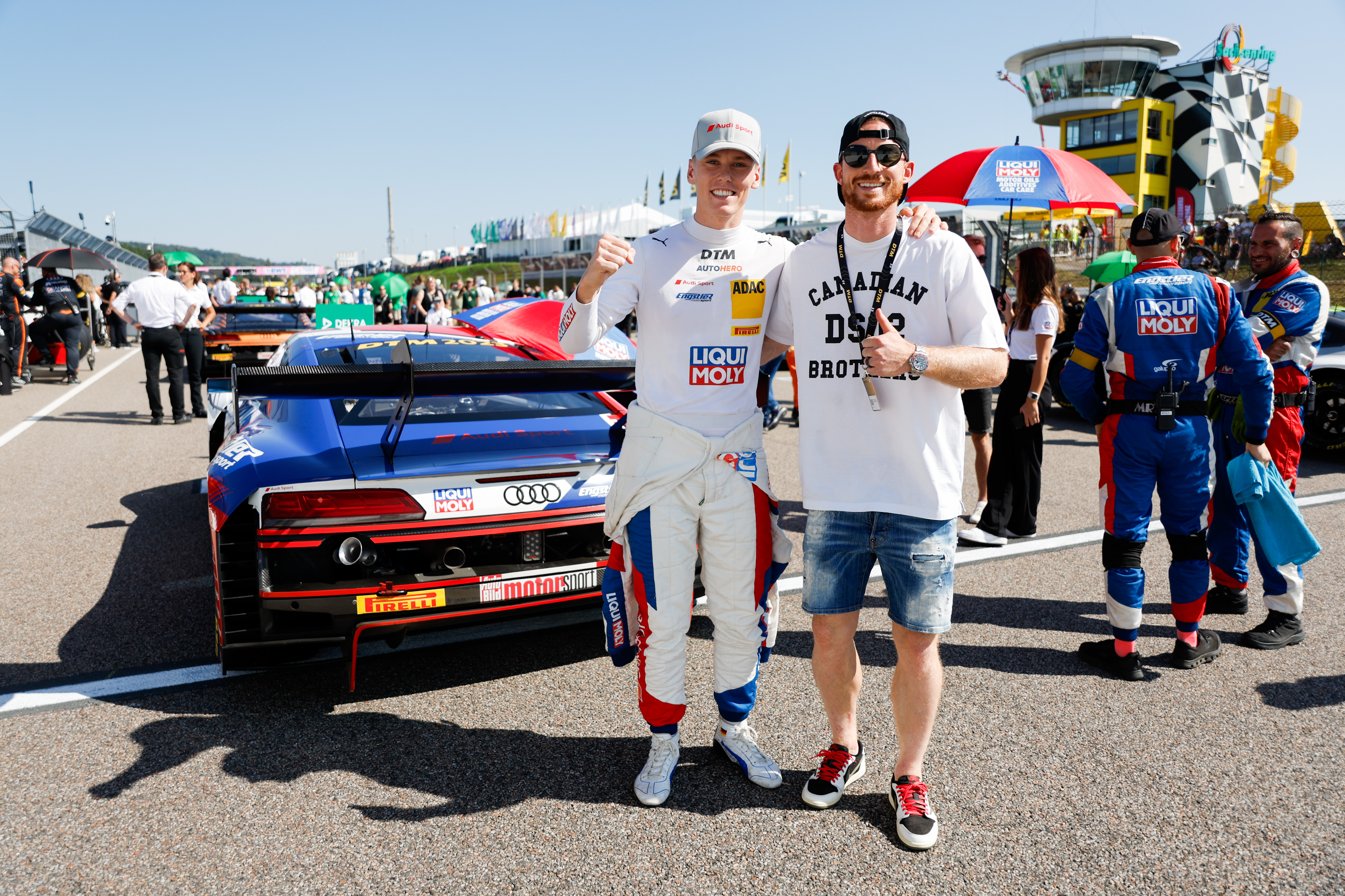 Wolfsburg player Maximilian Arnold was invited to the Sachsenring by his friend Luca Engstler on Saturday, and confessed to being a big DTM fan. “I grew up 50 minutes from the Sachsenring and came here with my parents. I have been watching the races since Luca started driving in the DTM. Because our Bundesliga matches start at 15:30 on Saturdays, I watch from 13:30 until I have to take to the field,” said Arnold, who has three German caps to his name. The 29-year-old is fascinated by the battle for every hundredth of a second and the high standard in the evenly matched DTM field, and is also full of respect for his friend Luca. “It is unbelievable how the drivers and engineers in the DTM strive to get every last ounce of performance out of the cars. The same goes for Luca. It is crazy when I see his training regime – for example, how he cycles in the sauna.” Former goalkeeper Perry Bräutigam also enjoyed the race weekend at the Sachsenring. The former DDR international made more than 100 Bundesliga appearances for Hansa Rostock and followed the twelfth race of the season live at the circuit.