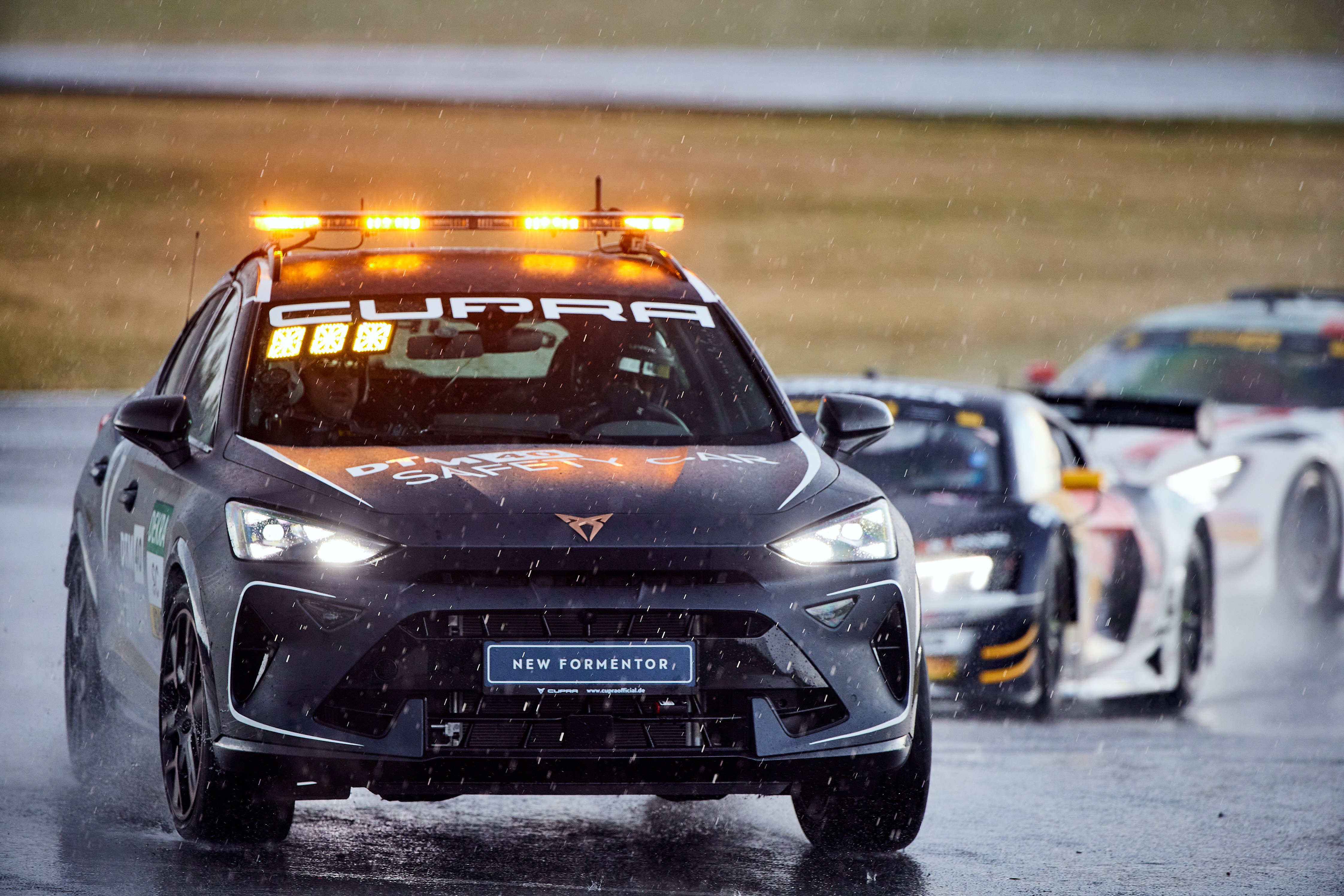 Pole-Setter Kelvin van der Linde konnte nach dem Rennstart um 17 Uhr die Führung verteidigen. Auf Platz zwei folgte sein Teamkollege Ricardo Feller (CH), der Preining gleich zu Beginn überholte und auf Rang drei verwies. Allerdings kündigten dunkle Wolken die kommenden Niederschläge an, die immer stärker wurden und alle Fahrer dazu zwangen, auf Regenreifen umzusteigen. Teilweise mehrere Zentimeter hochstehendes Wasser auf der Fahrbahn zwang die DTM-Stars allerdings zu zwei Rennunterbrechungen. Nach rund halbstündiger Pause wurde der Meisterschaftslauf hinter dem Safety-Car, dem neuen Cupra Formentor VZ, wieder aufgenommen. Dabei machte Engel, der als einer der Ersten auf Regenreifen umgestiegen war, den größten Sprung nach vorn und schob sich vom 13. auf den zweiten Rang vor.