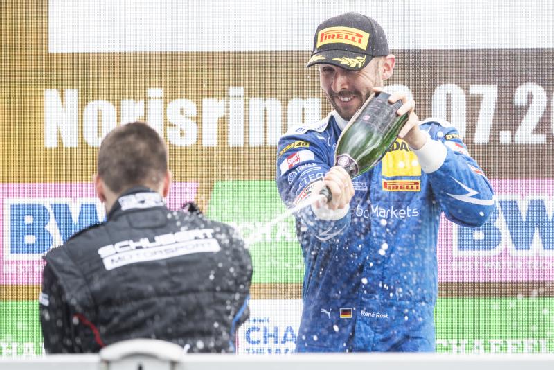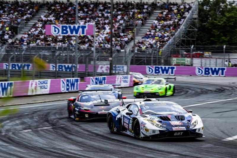 Nuremberg. Nerves of steel and a flawless performance – René Rast claimed his first win of the season on Saturday at the street circuit in Nuremberg. The BMW driver from Schubert Motorsport refused to allow the sudden onset of rain to knock him out of his stride, staying out on slicks and going on to take the chequered flag after 69 laps of racing. The win at the Norisring saw the three-time DTM champion return to the top step of the podium after four podiums in the past two years. “For me, the Norisring is one of the best tracks on the calendar. This win feels huge. It got a bit loud on the radio, because I was determined to stay on slicks, despite the rain. That was a brave decision, but it paid dividends,” said the experienced German. The Rast strategy also paid off for Franck Perera (F) from Lamborghini Team TGI by GRT and his team-mate Luca Engstler (Kempten), who came home second and third at the end of an eventful race.