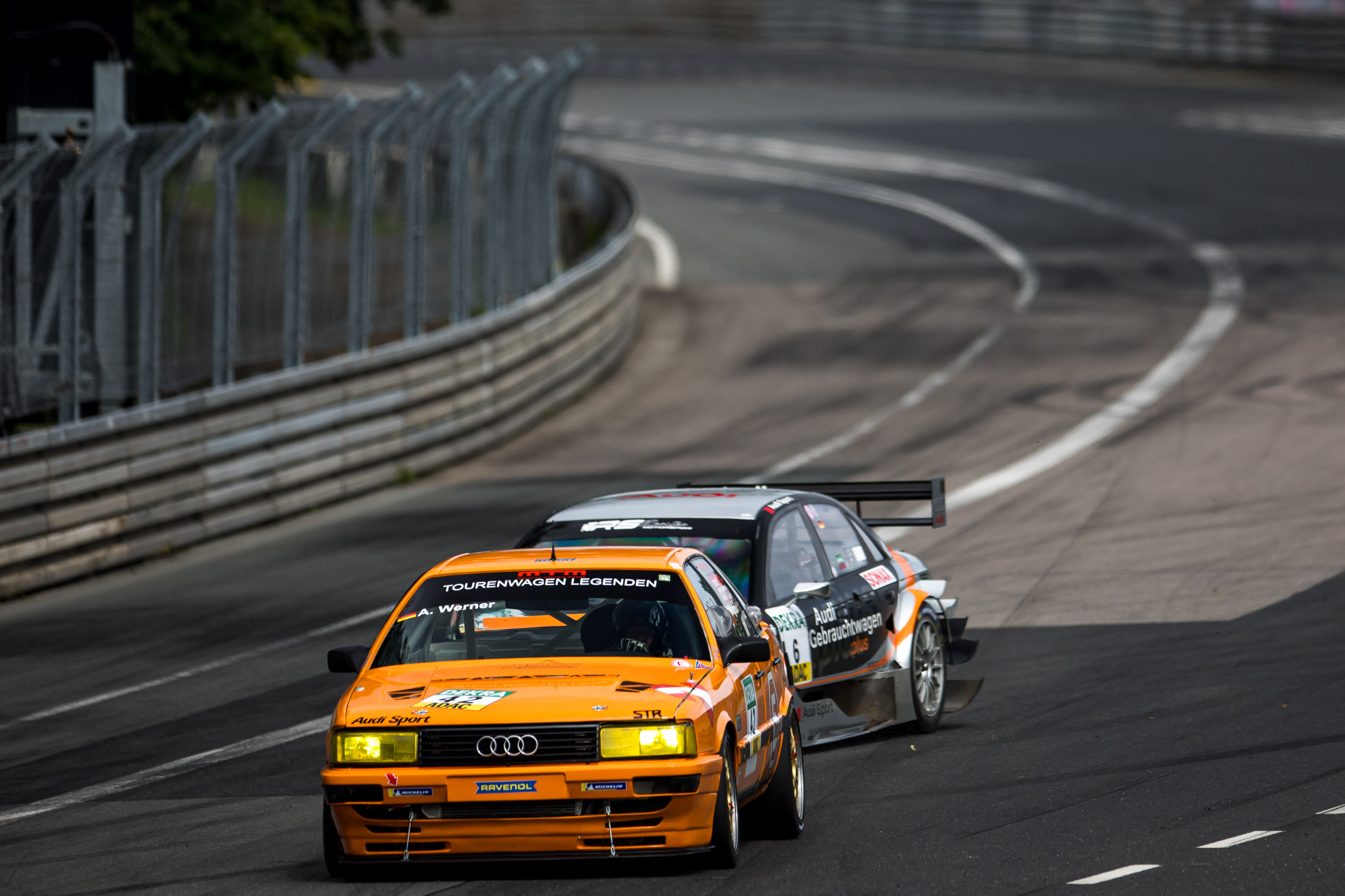 Nürnberg. Der zweite Lauf der DTM Classic auf dem Norisring wurde zur Beute von Anton Werner (Audi 200 M86 MTM). Der Landshuter musste sich lange gegen seinen hartnäckigen Verfolger Stefan Rupp (Audi A4 DTM) wehren, bis Rupp in der 19. Runde mit einer defekten Antriebswelle ausschied. Peter Mücke (Mercedes-Benz C-Klasse DTM) erbte den zweiten Rang vor Ronny Scheer (Ford Sierra RS500 BTCC). Für Werner, der seinem Triumph nach Rupps Ausfall relativ entspannt entgegenfahren konnte, war es dennoch keinen Jubel wert, als sein Rivale aufgeben musste. „Danach wurde es etwas langweiliger, denn es war ein schönes Duell mit Stefan. Ich bin sowieso überrascht, dass ich mit meinem Audi 200 gegen seinen modernen Audi A4 so lange konkurrenzfähig war. Er hat ordentlich Druck gemacht, aber ich habe versucht, die Vorteile meines Autos auf den Geraden auszuspielen“, gab Werner seine taktische Ausrichtung zu Protokoll.