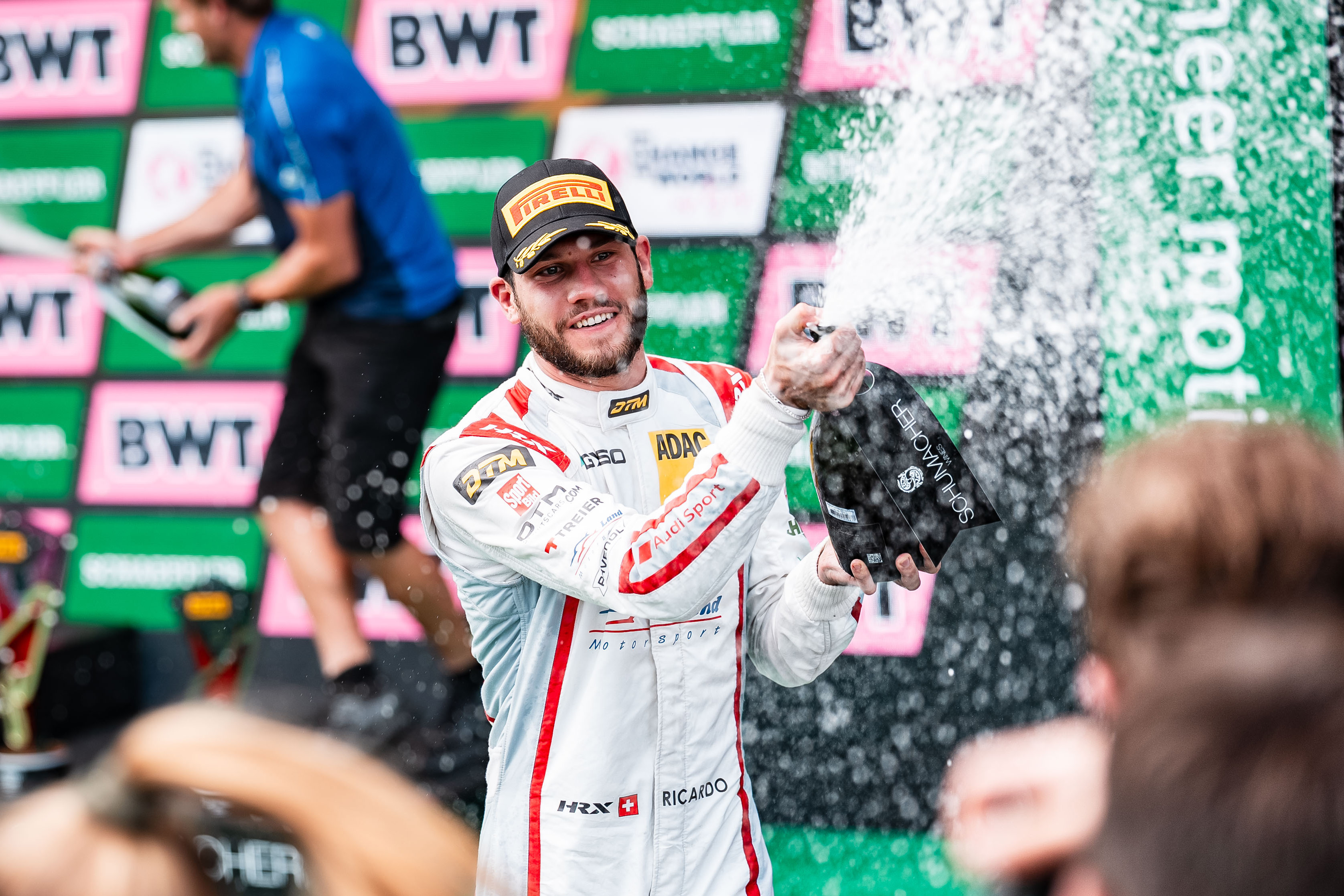 Ben Green: „Auf genau diesen Moment habe ich lange hingearbeitet. Man hat im Qualifying schon gesehen, dass unser Auto richtig stark ist. Das haben wir auch im Rennen gezeigt. Spektakulär war mein Manöver gegen Marco Wittmann, als wir nebeneinander durch die Schikane sind. Unsere Fahrzeuge haben sich berührt, aber aus meiner Sicht gehört das in der DTM dazu.“