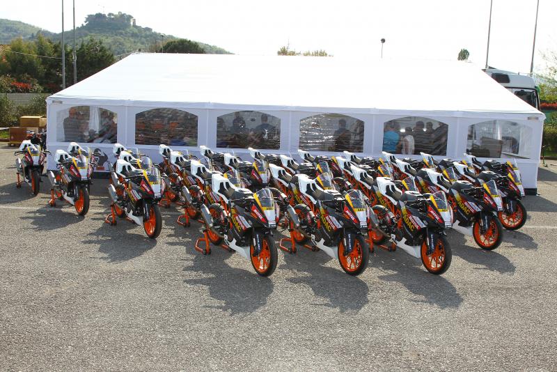 Für alle Fahrer beginnt die Saison mit einem Einführungslehrgang, der traditionell im italienischen Magione stattfindet. Dabei haben Anfänger und Erfahrene die Chance, sich mit ihren KTM RC 390 Cup Maschinen vertraut zu machen. Zudem lernen sie alle theoretischen und praktischen Grundlagen des Rennsports.