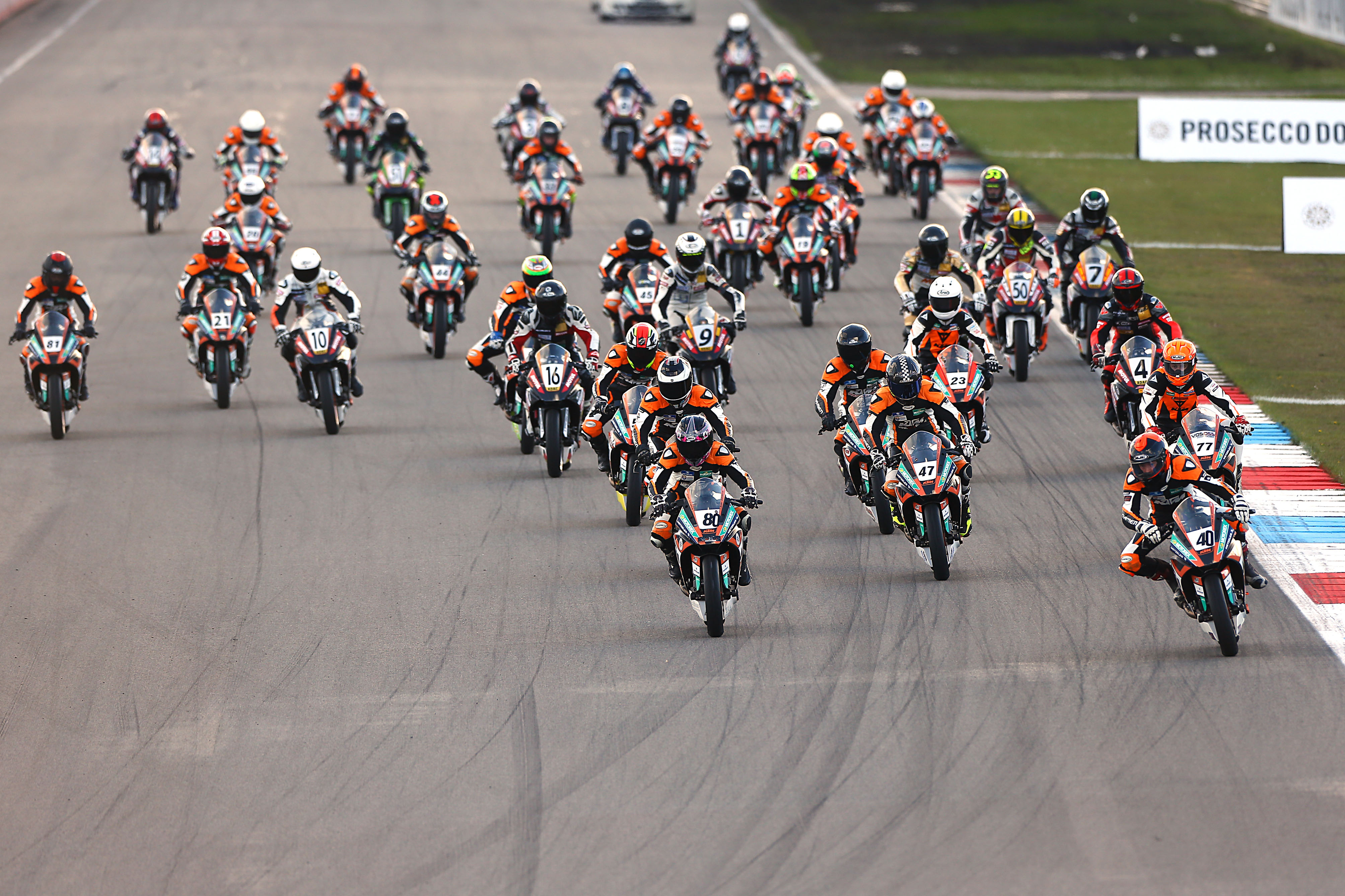 Die Verfolger haben zwar keine Chance mehr auf den Titel, kämpfen auf dem Hockenheimring aber noch eifrig um den dritten Platz im ADAC Junior Cup powered by KTM 2016. Yannick Kruse (21, Löhne) und Marco Fetz (16, Merkendorf) liegen punktgleich mit 96 Zählern auf den Rängen drei und vier. Auch Lee Doti (14, SUI), der vor dem Finale mit 86 Punkten auf Platz fünf liegt, hat noch Chancen, unter die besten Drei zu kommen.