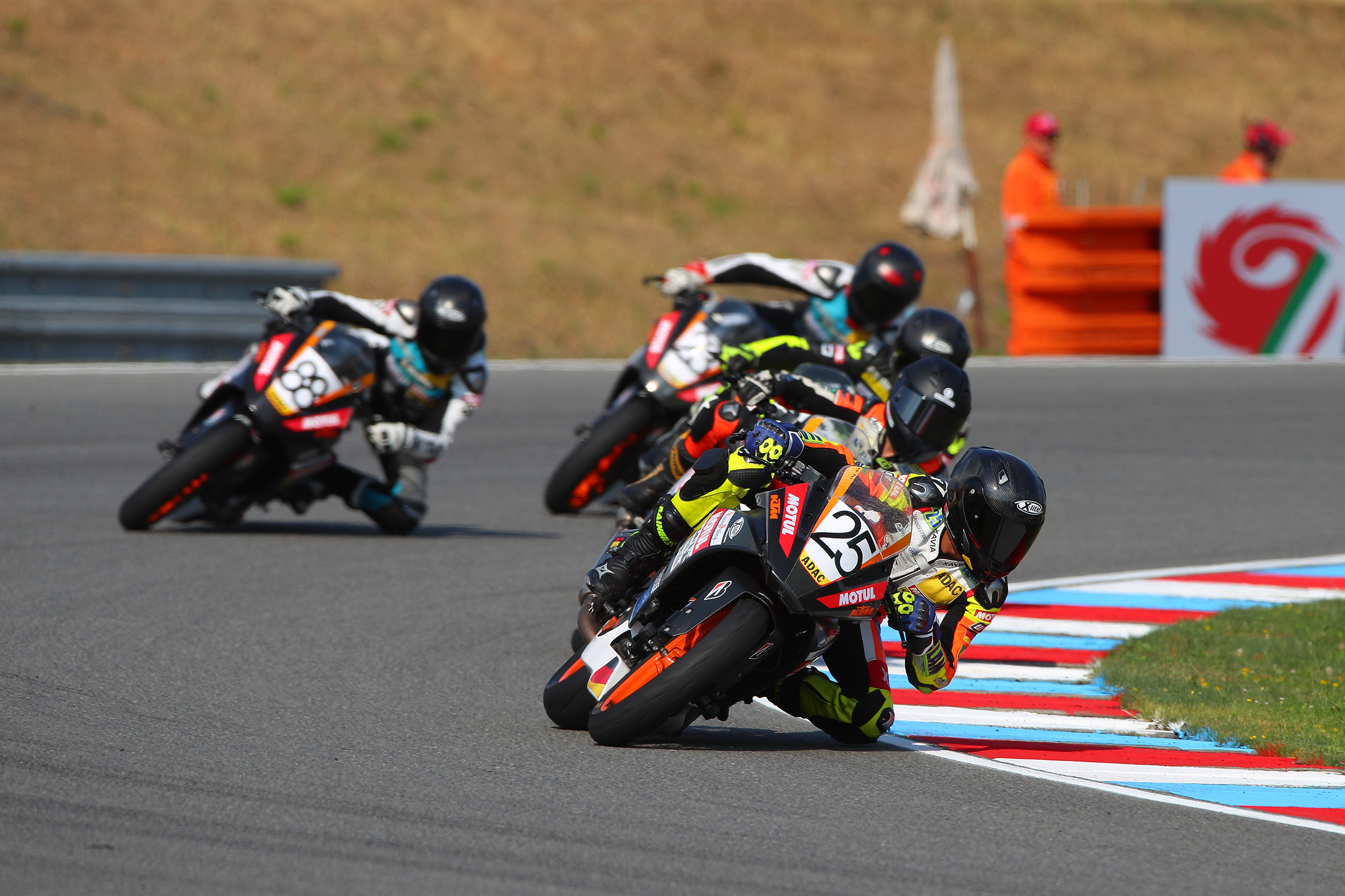 Auch Vasyliev befand sich bis zum Ende in der Spitzengruppe und kam schließlich 0,570 Sekunden hinter dem Sieger ins Ziel, wobei er sein erstes Podium im ADAC Junior Cup powered by KTM sichern konnte. Lokalmatador David Kuban (16, CZE), der von der Pole aus gestartet war, musste sich um nur 0,203 Sekunden geschlagen geben und wurde Vierter.