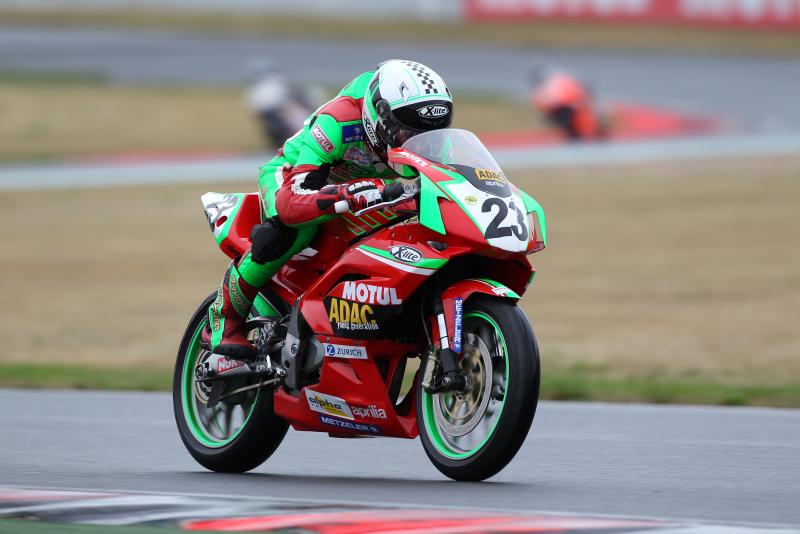 Nico Tietze (16, Lichtenau) behielt auf nasser Bahn ebenfalls die Nerven und sah die Zielflagge als Zweiter vor Jan Schmidt (18, Büdingen). Beide Piloten fuhren zum ersten Mal in dieser Saison unter die besten Drei und sorgten für Abwechslung auf dem Podium. Stéphane Frossard (18, Courgenay, SUI) holte, trotz eines Ausrutschers, als Vierter wertvolle Punkte für die Gesamtwertung.