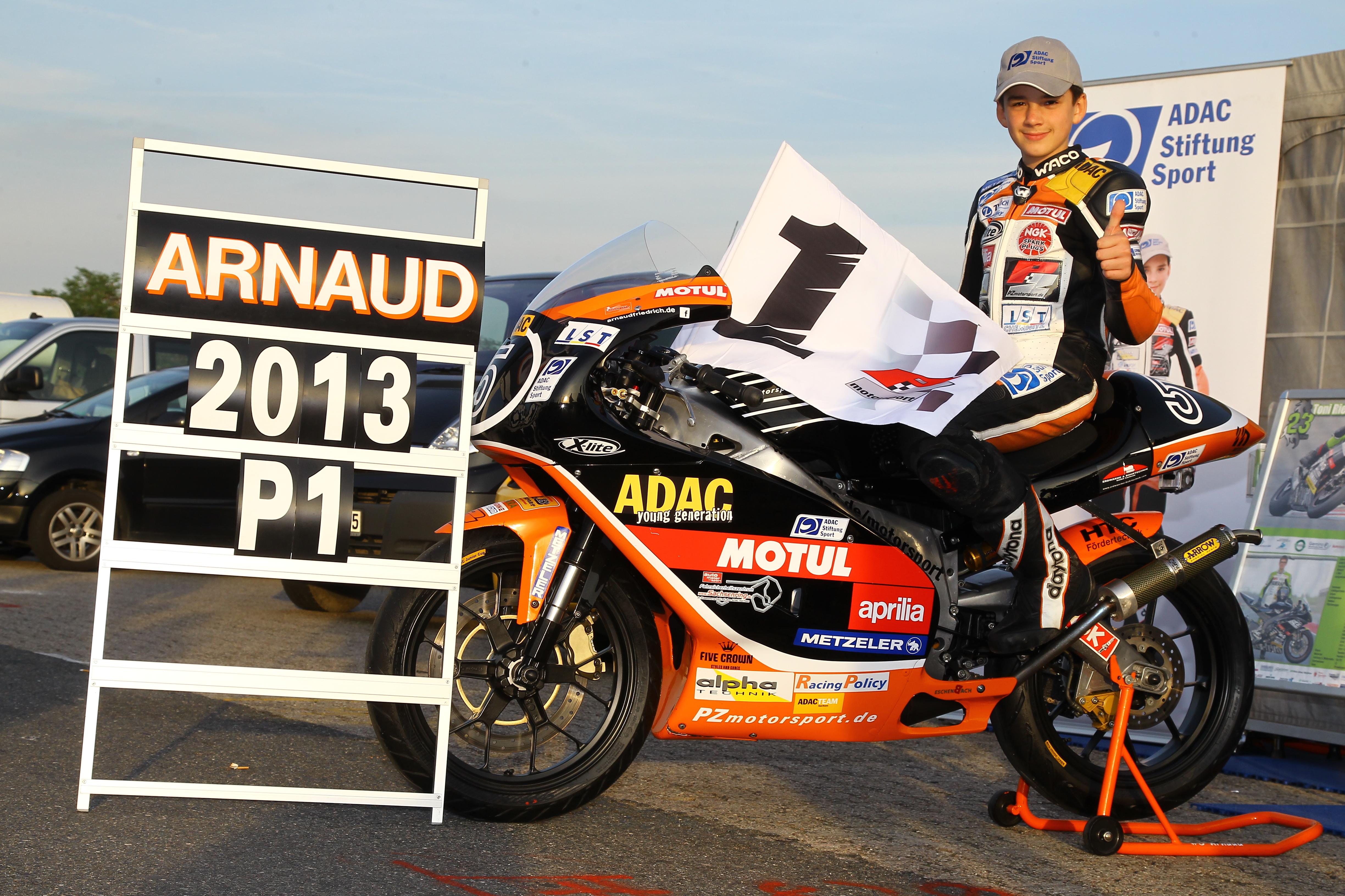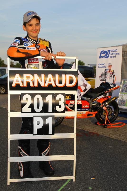 Arnaud Friedrich (13, Limbach-Oberfrohna) schaffte in seinem Rookie-Jahr im ADAC Junior Cup beim Finale in Hockenheim das Außergewöhnliche: Der Förderpilot der ADAC Stiftung Sport fuhr im letzten Rennen der Saison 2013 auf Platz acht und sicherte sich damit in seinem Debütjahr den Titel im ADAC Junior Cup. Als 21. Meister ist Friedrich gleichzeitig der letzte Gesamtsieger in der Zweitakt-Ära des ADAC Junior Cup. Ab der Saison 2014 starten die Fahrer der ADAC Talentschmiede auf neuen Viertakt-Maschinen von KTM.