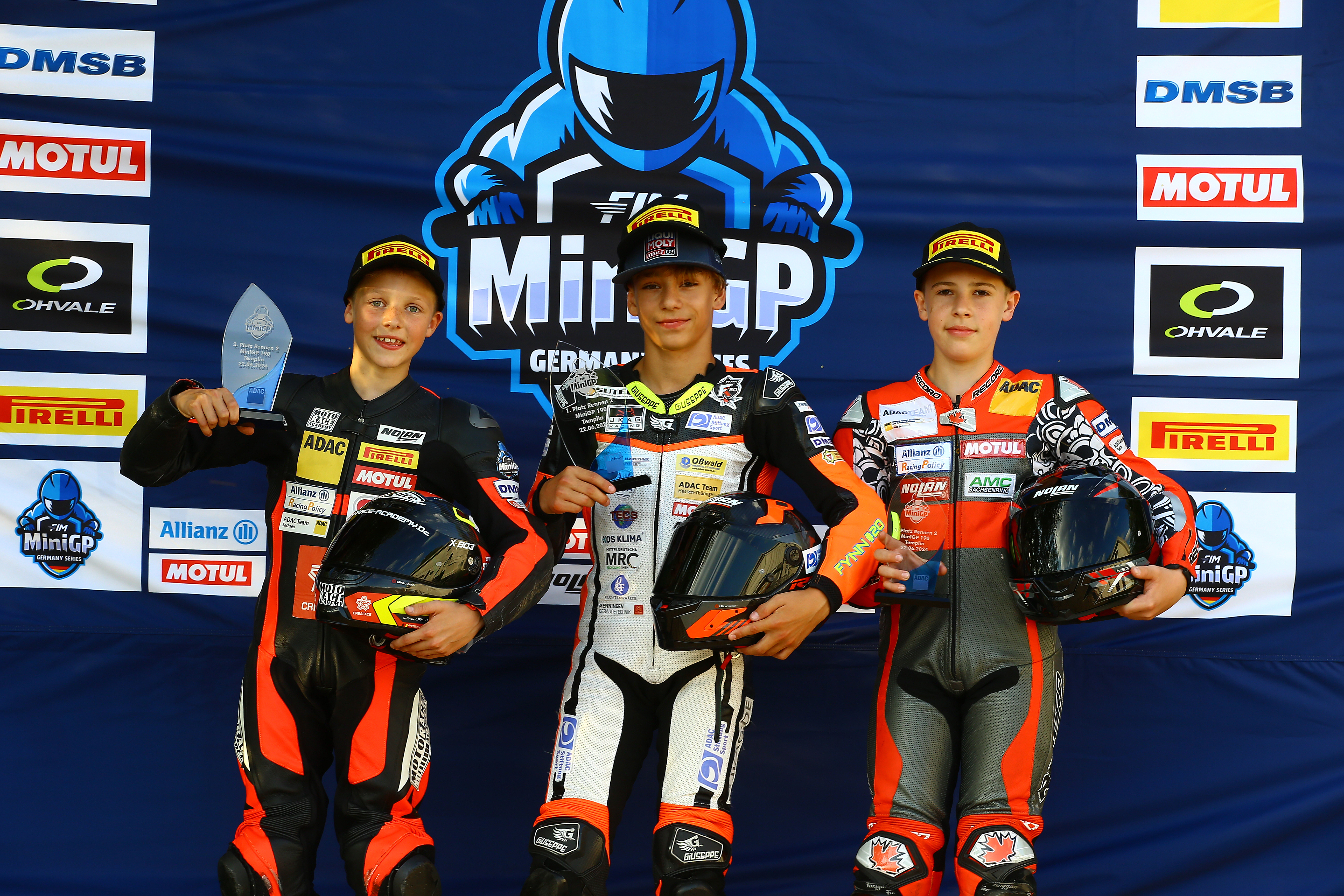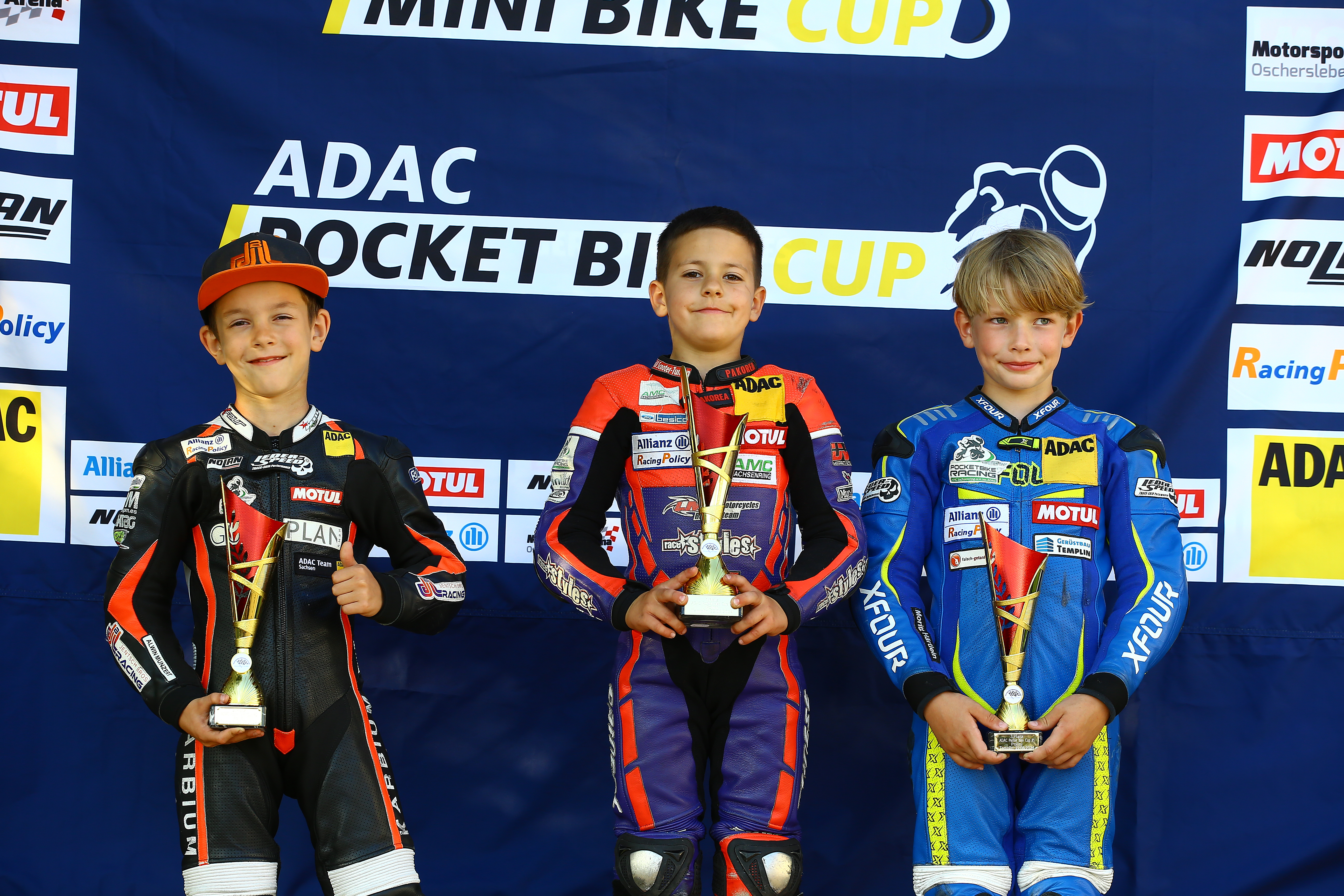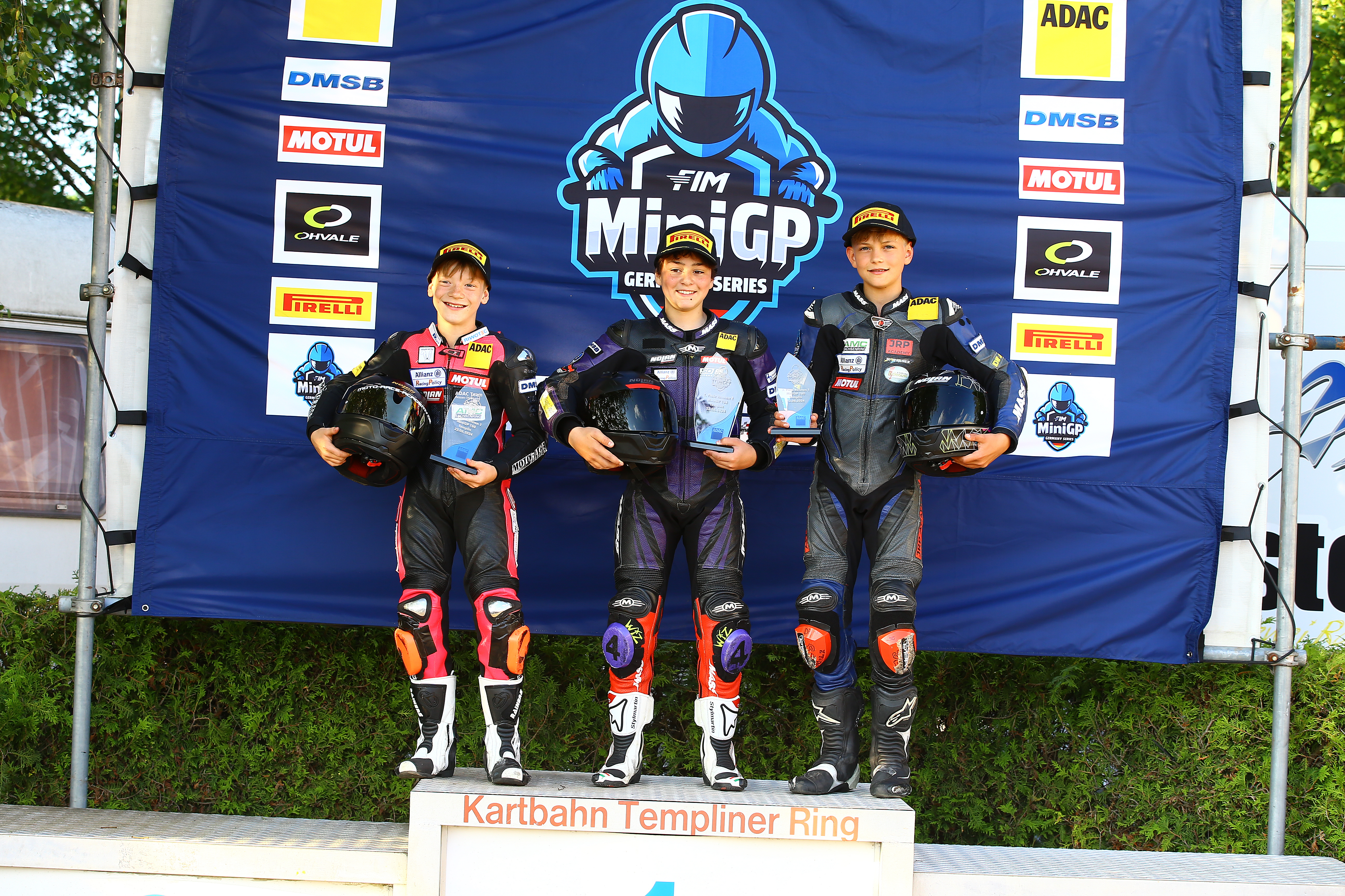 v.l.n.r.: Fynn Kratchowil, Robin Siegert, Jason Rudolph / ADAC Mini Bike Cup / Templin