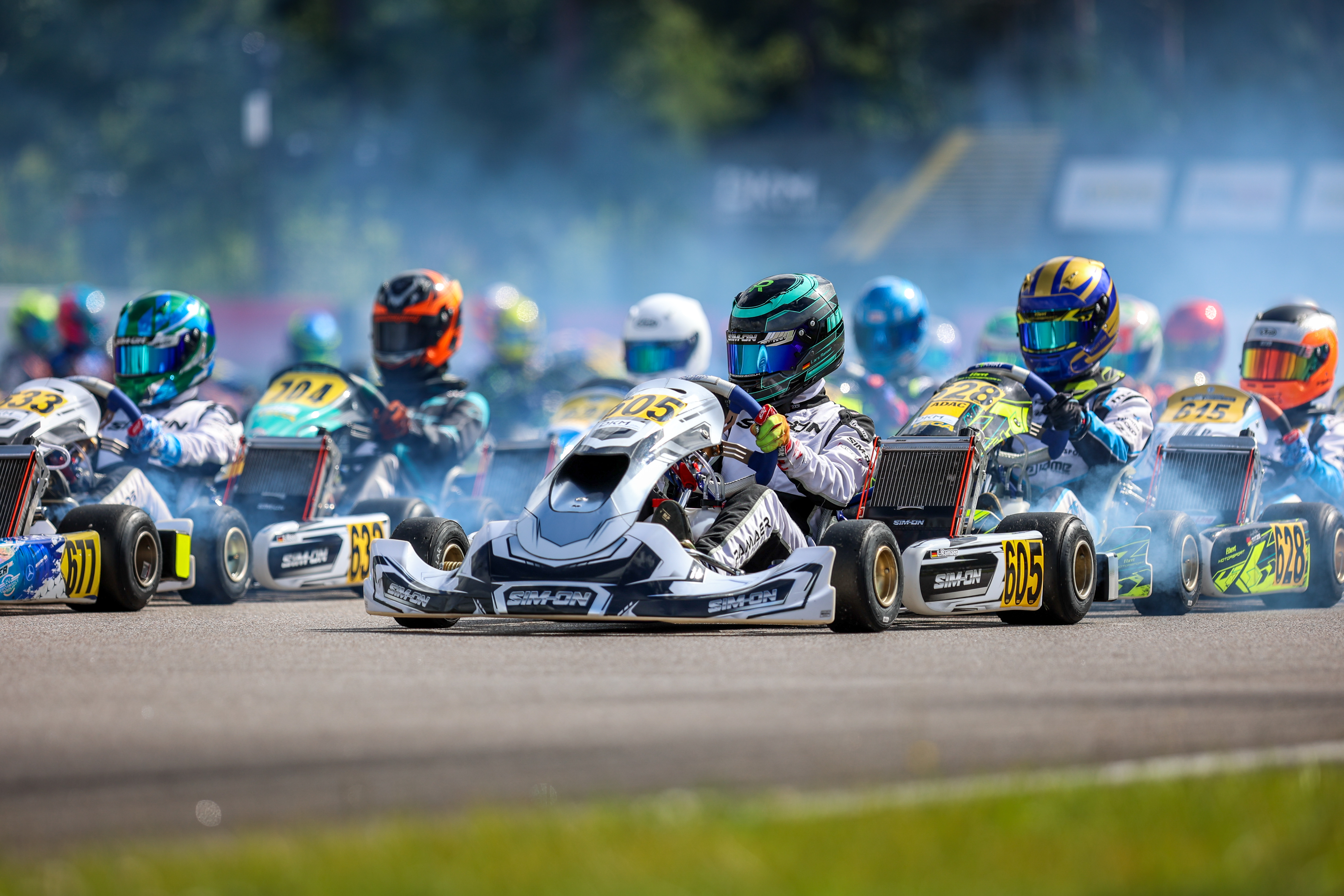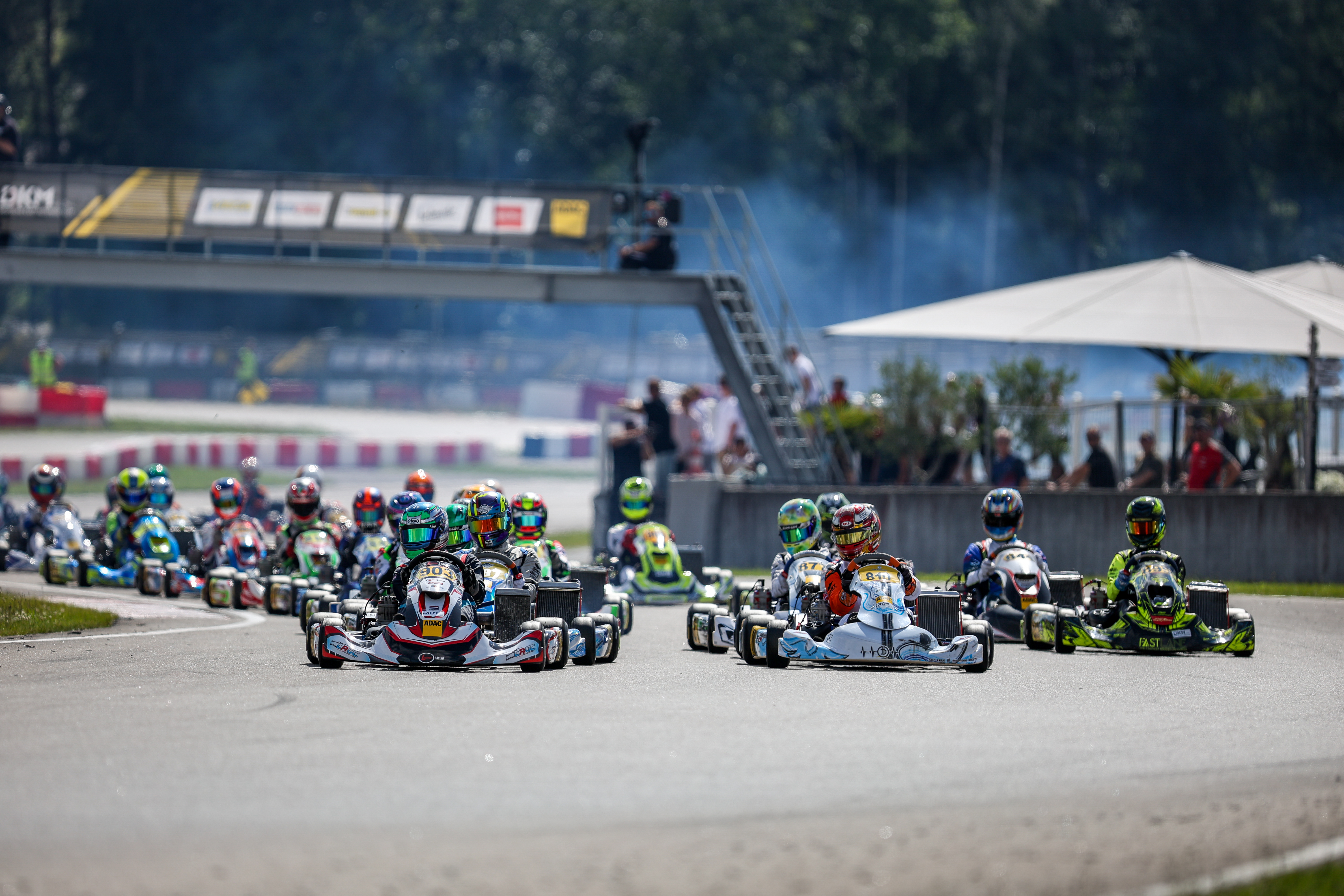 Wechselhaftes Wetter am Samstag sorgte für eine Zusatzportion Spannung. Eine nasse Strecke im Zeittraining verschob die Kräfteverhältnisse, zu den Vorläufen war es aber wieder trocken. Am Sonntag zeigte sich dann über den gesamten Tag die Sonne und es war sommerlich warm. Die guten Bedingungen ließen auch zahlreiche Zuschauer an die Rennstrecke pilgern und sorgten für eine tolle Atmosphäre. Zur Halbzeit führen Stan Pex (DKM), Moritz Groneck (DJKM), Milan Rossi (DMKM), Maximilian Schleimer (DSKC), Lars Ramaer (X30 Junior) und Elia Weiss (X30 Senior) die Felder an.
