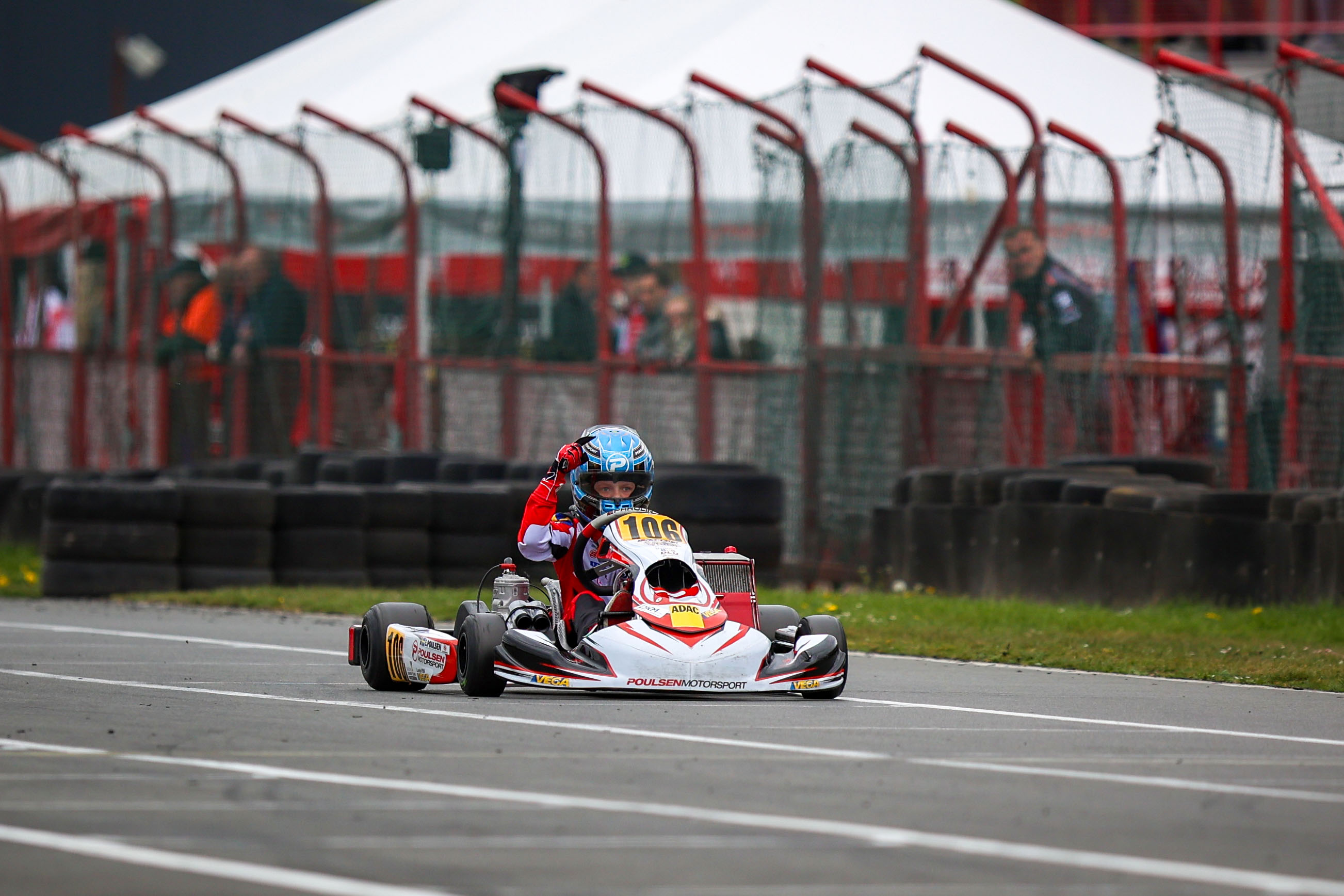 Er kam, sah und siegte: An Erik Poulsen (Poulsen Motorsport) ging an diesem Wochenende kein Weg vorbei. Der Schwede war vom Training an der schnellste OK-Junior-Fahrer und ließ sich bis zum Fallen der Zielflagge im Finale nicht mehr von Platz eins verdrängen. Nach diesem erfolgreichen Auftakt war er im Siegerinterview sichtlich zufrieden: „Meine Strategie für das Finale war es sich direkt nach dem Start vom Feld zu lösen und dann ohne Druck das Rennen zu fahren. Das hat super funktioniert und war ein erfolgreicher Abschluss des Wochenendes.“