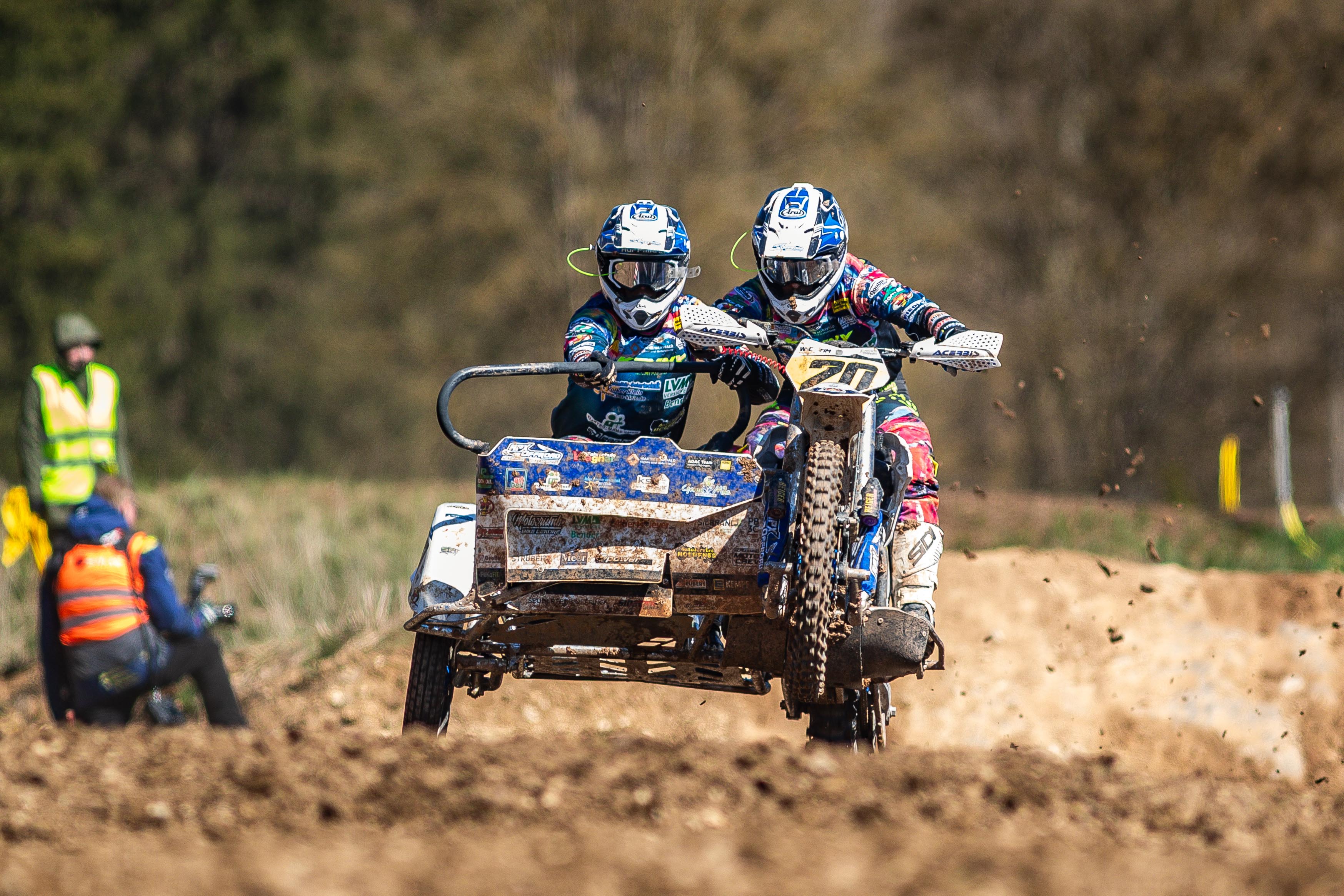 Den Best Qualifier Award sicherte sich im Zeittraining das Duo aus Tim Prümmer (D) und Aivar Van der Wiel (NL/KTM AMS-VMC), der für den verletzten Jarno Steegmanns (B) einsprang, der normalerweise der Beifahrer von Prümmer ist. Bei warmen Temperaturen und trockenen, harten Streckenbedingungen kamen Prümmer/Van der Wiel gut aus dem Startgatter und duellierten sich rundenlang mit Peter/Hoffmann. Doch in der letzten Runde gelang es den Weinmann-Brüdern an die Spitze zu gehen und den Laufsieg vor Prümmer/Van der Wiel, Peter/Hoffmann, David Bolliger/William Leutwyler (CH/VMC Husqvarna) und Käser/Käser zu erzielen. Der Start zum zweiten Lauf erfolgte aufgrund gesundheitlicher Probleme ohne Prümmer/Van der Wiel. Erneut ging der Laufsieg an die Gebrüder Weinmann, die sich dieses Mal vor Peter/Hoffmann, Käser/Käser, Patrick Hengster/Celina Jahn (D/KTM), die aushilfsweise anstatt von Justin Blume (D) im Beiwagen saß, und Nick Uhlig/Philipp Oettel (D/WSP Mega) durchsetzten. Mit der Maximalpunktzahl ging die Tageswertung an Weinmann/Weinmann vor Peter/Hoffmann und Käser/Käser, die erstmals in dieser Saison auf dem Podium standen. Damit übernahmen die „Weinmänner“ die Führung in der Meisterschaft vor Peter/Hofmann, Prümmer/Steegmans, Daniels und Bruno Lielbardis (LVA/WS-Mega RS) und Hengster/Blume