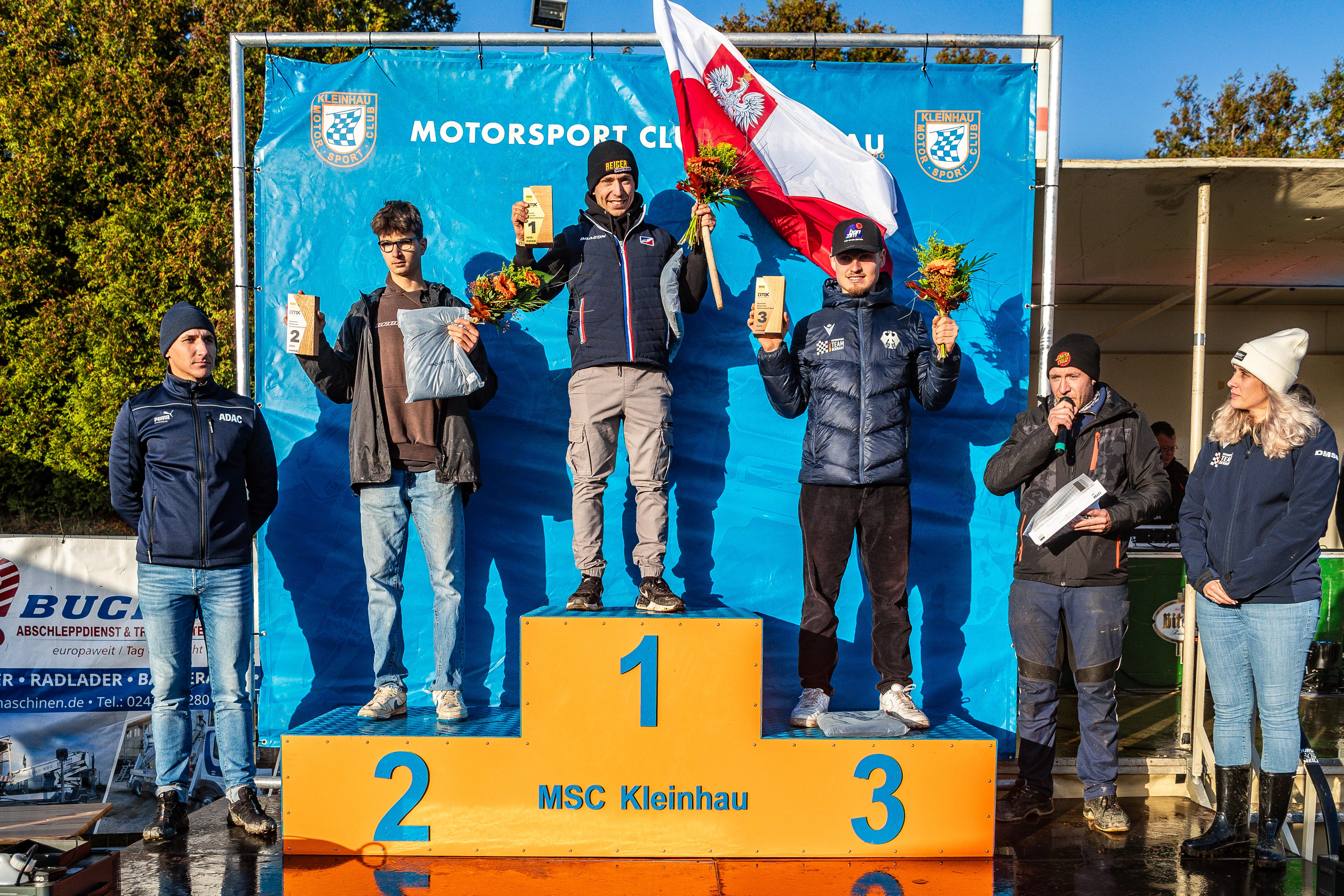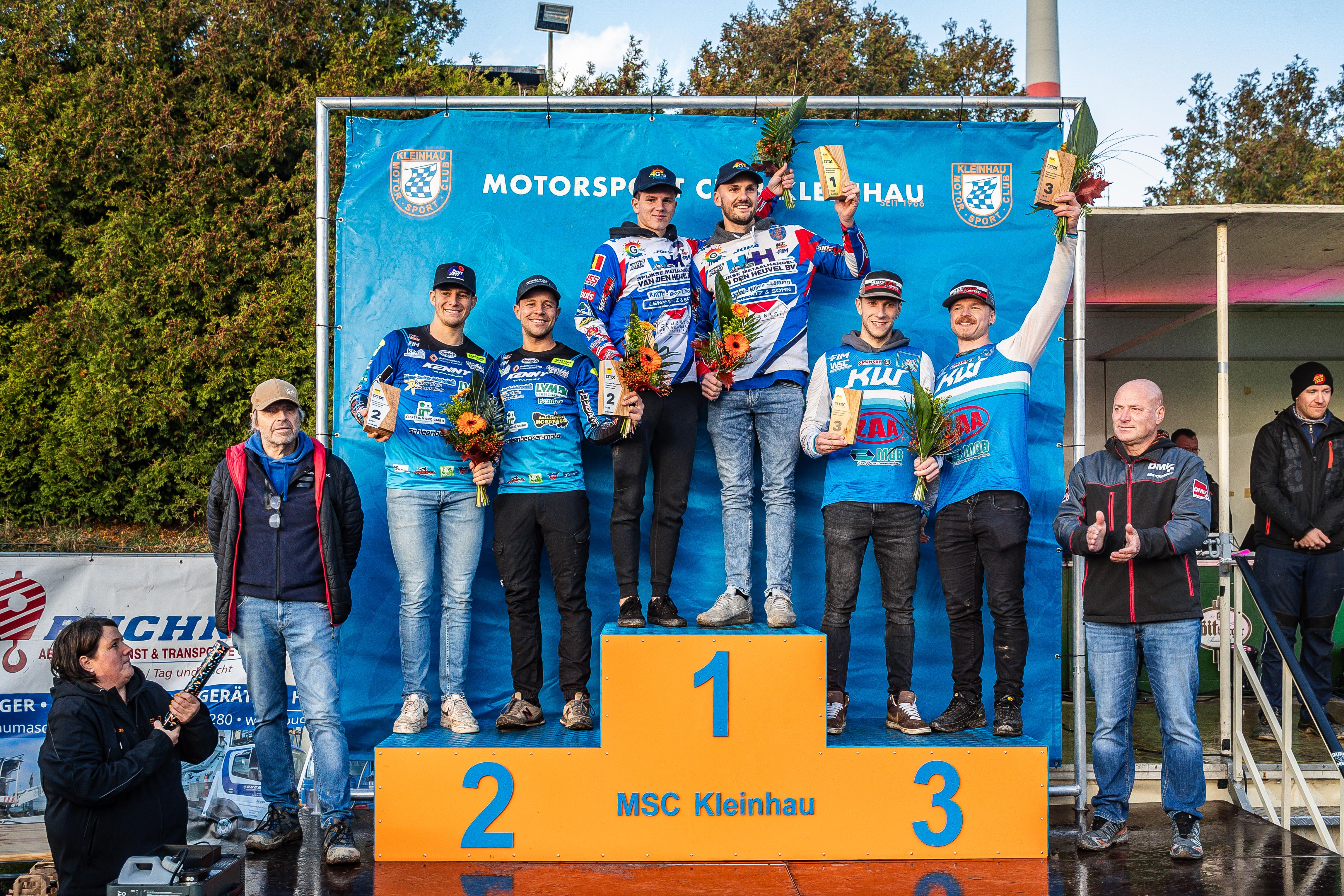 Kleinhau. Am vergangenen Samstag fand das Saisonfinale der Deutschen Motocross-Meisterschaft in den Klassen Quad und Seitenwagen statt. Regen am Vortag und morgens sorgte anfangs für herausfordernde Bedingungen, die im Tagesverlauf jedoch deutlich besser wurden. Roman Gwiazda (PL/Yamaha) sicherte sich mit dem zweiten Tagesrang hinter Jordi Gieler (D/Yamaha) seine zweite Deutsche Meisterschaft. Die Rennen der Seitenwagen-Klasse konnten aufgrund einer Sturmwarnung nicht durchgeführt werden. Damit stand das Team aus Tim Prümmer (D/VMC AMS) und Jarno Steegmans (B) als neuer Deutscher Meister fest.