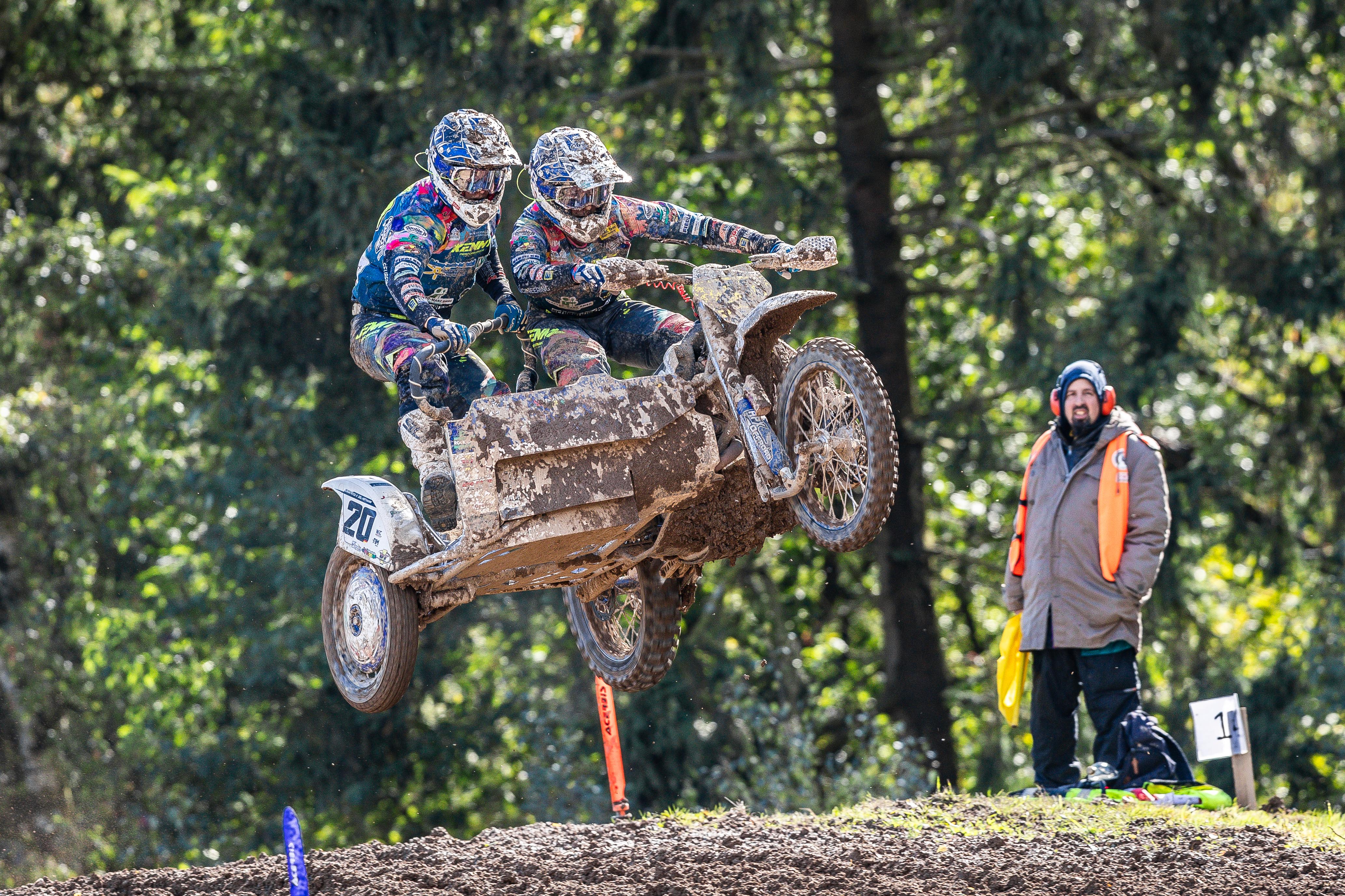 Aufgrund der Wetterlage konnten die Rennen der Seitenwagen nicht regulär durchgeführt werden. Somit wurden Tim Prümmer und Jarno Steegmanns zu den neuen Deutschen Meistern gekürt. Adrian Peter/Joel Hoffmann (D/VMC Husqvarna) wurden Vizemeister vor Lukas Erlecke/Leon Freygang (D/VMC Zabel).