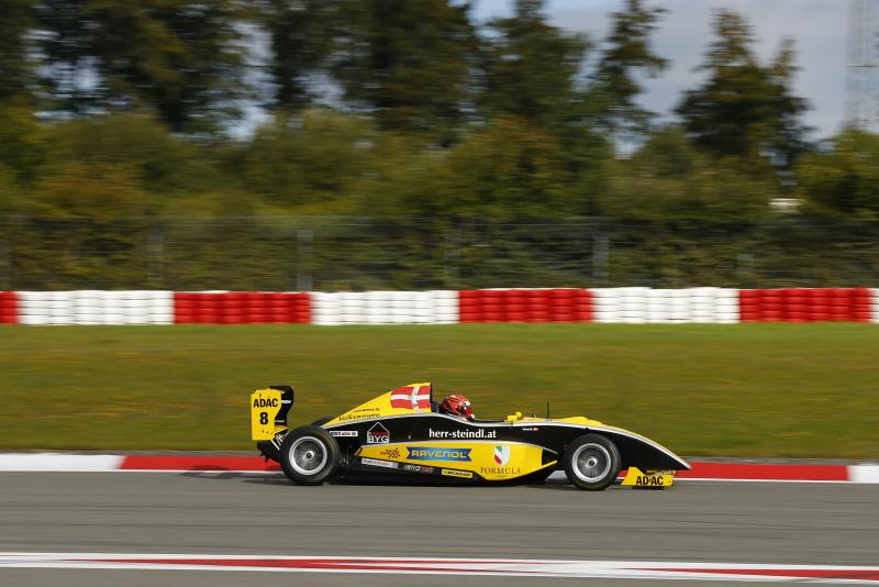Nürburgring. Mikkel Jensen (19, Denmark, Neuhauser Racing) got off to a perfect start at the sixth race weekend of the 2014 Formel ADAC season at the Nürburgring. The championship leader won the first of three races in the Eifel from pole position. Jensen crossed the finish line with a lead of 2.4 seconds on Marvin Dienst (17, Germany, ADAC Berlin-Brandenburg e.V.) in second place. Joel Eriksson (16, Sweden, Lotus) rounded off the podium party in third position, so drivers from three different countries and three different teams finished on the podium.