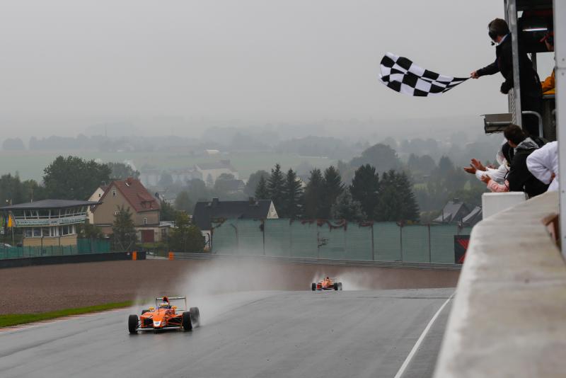 Im letzten Umlauf kam es zu einer leichten Berührung zwischen den beiden Piloten. Während sich Zimmermann auf der Strecke drehte und sich in der Folge mit Platz fünf zufrieden geben musste, kam Jensen unbeschadet davon und startete eine Aufholjagd. Der neue Meister des ADAC Formel Masters überholte Walilko in der vorletzten Kurve und lag auf Kurs zu seiner dritten Podiumsplatzierung an diesem Wochenende. Doch sein polnischer Rivale gab nicht auf und erkämpfte sich den Platz mit einem Überholmanöver auf der Innenseite der letzten Kurve zurück.