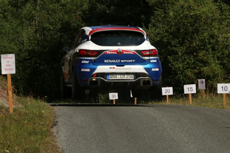 Der Sieg in der Division 4 war für Carsten Mohe nie gefährdet. Der Erzgebirgler kämpfte im Renault Clio R3T jedoch mit den beiden Youngstern des ADAC Opel Rallye Junior Teams in ihren Opel Adam R2 um den Rang als bestes Team mit Frontantrieb. Obwohl er nach spannenden Sekundenkämpfen knapp den Kürzeren zog, bescherte ihm der Divisionssieg die Führung in der Zwischenwertung des ADAC Rallye Masters. „Das hatte ich so gar nicht im Blick“, bekannte er beim Zieleinlauf, „aber das freut mich natürlich sehr.“ Zu Beginn der Samstagsetappe musste Mohe noch eine Schrecksekunde überstehen. Auf einer sehr welligen Passage versetzte sein Clio und er schlug in die Leitplanken ein: „Die Fahrwerksabstimmung war für diese Prüfung einfach zu hart. Die Spur war verstellt und auf der Verbindungsetappe habe ich sie per Augenmaß korrigiert – dafür lief es anschließend noch ganz gut.“