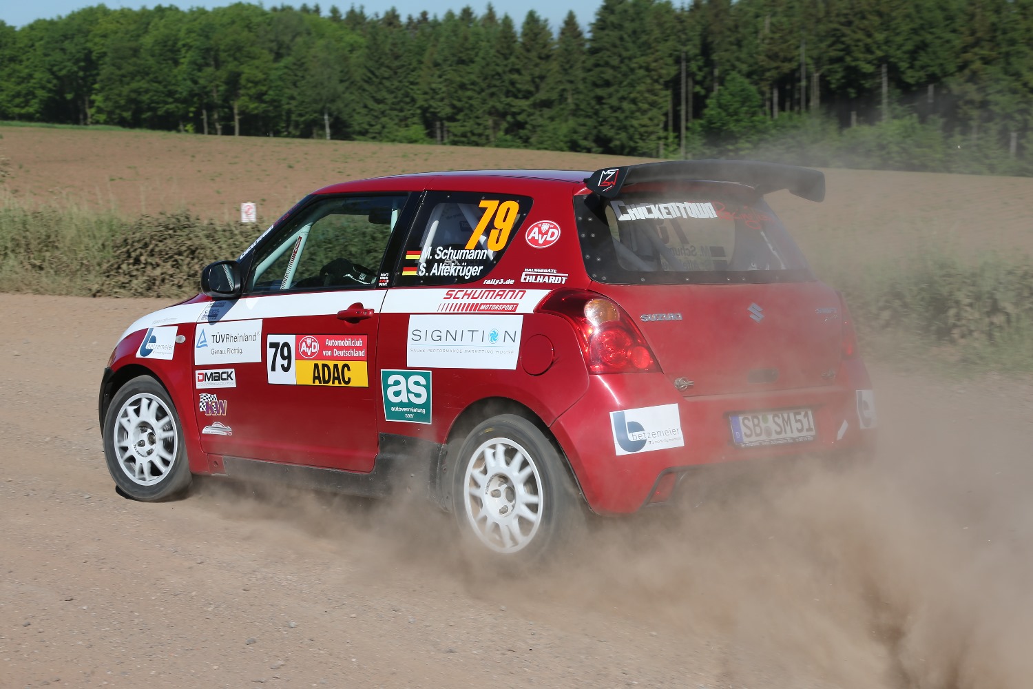 Der vierte Divisionssieg in Folge wurde Schumann / Altekrüger nicht leichtgemacht. Die Routiniers Veit König / Hans-Helmut Zappe (Zschopau / Vacha) starteten ebenfalls in einem Suzuki Swift und übernahmen sofort die Führung. Schumann konterte und lag ab WP 3 vorne, in der sechsten WP musste König aufgeben. Schuman strahlte im Ziel; „das hat richtig Spaß gemacht, nachdem wir vorne lagen konnten wir uns Sekunde um Sekunde absetzen. Am Ende ging es dann nur noch darum, den Sieg nach Hause zu fahren und die wichtigen Masters-Punkte zu sichern.“ Tobias Just (Burgpreppach) und Copilotin Lisa Kiefer (Landau/Pfalz) lagen in einem weiteren Suzuki Swift auf dem zweiten Platz, Just sagte, „am Freitag konnten wir einen ordentlichen Speed vorlegen, am Samstag waren wir dann auf dem Schotter nicht mehr ganz so schnell wie die Spitze. Daher sind wir mit Platz zwei in der Division sehr zufrieden.“ Eine spätere Strafzeit von 30 Sekunden warf sie dann um vier Sekunden auf den dritten Platz zurück, den zweiten Platz belegten nun die Greizer Dirk Knüpfer / Jacqueline Hewilsberg in ihrem Škoda Fabia.