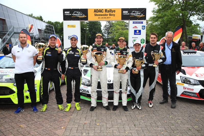 Lübbecke. Nach einem spannenden Kampf sicherten sich Fabian Kreim / Frank Christian (Fränkisch-Crumbach / Oberhausen) im Skoda Fabia R5 den Sieg bei der ADAC Rallye Stemweder Berg (23. – 24. Juni 2017). Für die Youngster von Skoda Auto Deutschland war es der dritte Sieg in Folge bei der Rallye rund um Lübbecke, sie absolvierten die 15 Wertungsprüfungen (WP) über 136,15 Kilometer in 1:20:39,1 Stunden. Den zweiten Platz beim fünften von acht Läufen zur Deutschen Rallye-Meisterschaft (DRM) sicherten sich René Mandel / Dennis Zenz (Sommerkahl / Klausen) im Ford Fiesta R5. Die DSK-Youngster verteidigten mit diesem Erfolg ihre DRM-Führung vor den amtierenden Meistern Kreim / Christian. Den dritten Rang erkämpften sich Dominik Dinkel / Christina Kohl (Rossach / Tiefenbach) im Brose Fabia R5. Mit dem Sieg schob sich Kreim (90 Punkte) in der DRM-Wertung dicht an Mandel (93) heran, Dritter ist Dinkel mit 67 Zählern. Die 2WD-Wertung für Fahrzeuge mit nur einer angetriebenen Achse gewannen Sebastian von Gartzen / Hans-Peter Loth (Gießen / Frankfurt) im Citroën DS3 R3T mit dem Hauch von 0,9 Sekunden vor den Seriensiegern Carsten Mohe / Alexander Hirsch (Crottendorf / Tannenberg) im Renault Clio R3T. In der Meisterschaftstabelle führt Mohe weiterhin mit 134 Punkten vor von Gartzen (83) und Konstantin Keil / Stefanie Fritzensmeier (Niestetal / Bielefeld) im Citroën DS3 R3T mit 61 Zählern.