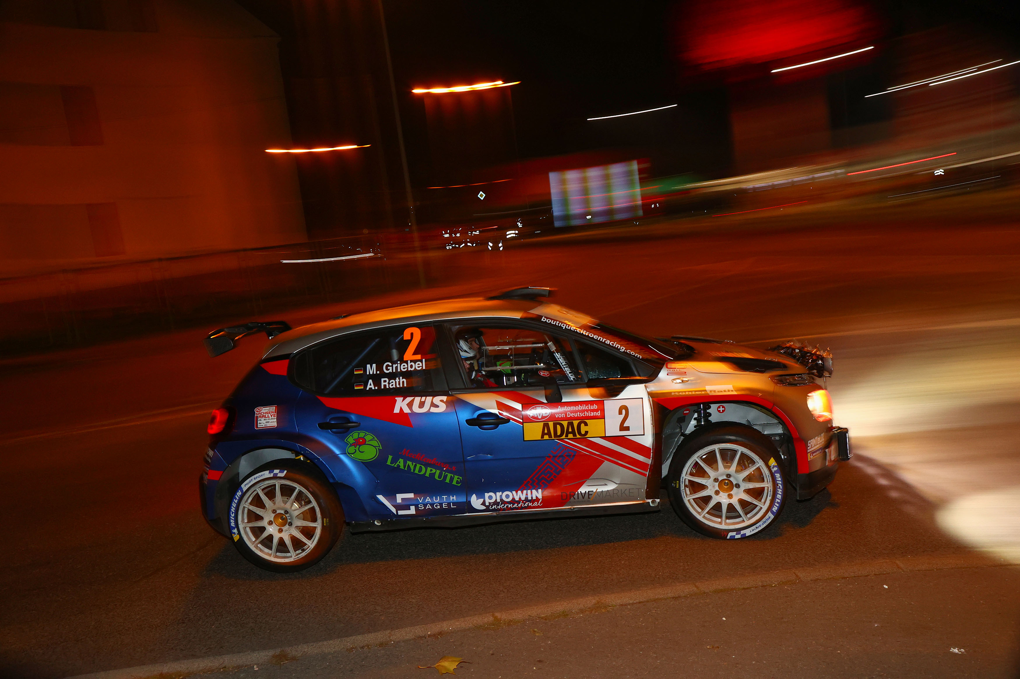 Nach einem zweiten Platz bei der ADAC Cimbern Rallye im hohen Norden Deutschlands sowie Rang drei beim Bayern-Gastspiel im Rahmen der ADAC 3-Städte-Rallye war die Marschroute für das Finale in Sachsen, zu dem Griebel/Rath mit drei Punkten Rückstand auf die Führenden Dominik Dinkel/Pirmin Winklhofer anreisten, zunächst klar: „Volle Attacke, der Sieg war das Ziel!“ Und auch als der Oberfranke Dinkel mit technischen Problemen zurückfiel, gab es im Cockpit des Citroën noch keine Entwarnung: „Selbst wenn wir im Rallye-Klassement nicht in unmittelbarer Nähe gelegen wären, hätten die Punkte der Power-Stage-Wertung immer noch entscheidend sein können. Zurücklehnen war in diesem Moment definitiv noch nicht möglich“, denkt Griebel an die alles entscheidende zweite Etappe der Sachsen-Rallye zurück. „Nachdem Dominik am Nachmittag dann ausfiel, haben wir in einen ‘sicheren Modus‘ geschaltet. Der Meisterschaftssieg war definitiv wichtiger als der Angriff auf Julius [Tannert] und ein möglicher Rallye-Triumph. Ich habe ein Tempo gewählt, bei dem ich wusste, dass ich einerseits das Auto nicht zu sehr belaste, andererseits aber auch keine Fehler mache. Man hört dann doch sehr in sein Fahrzeug hinein, die Prüfungen werden gefühlt deutlich länger“, gibt der erfahrene Rallye-Pilot zu.