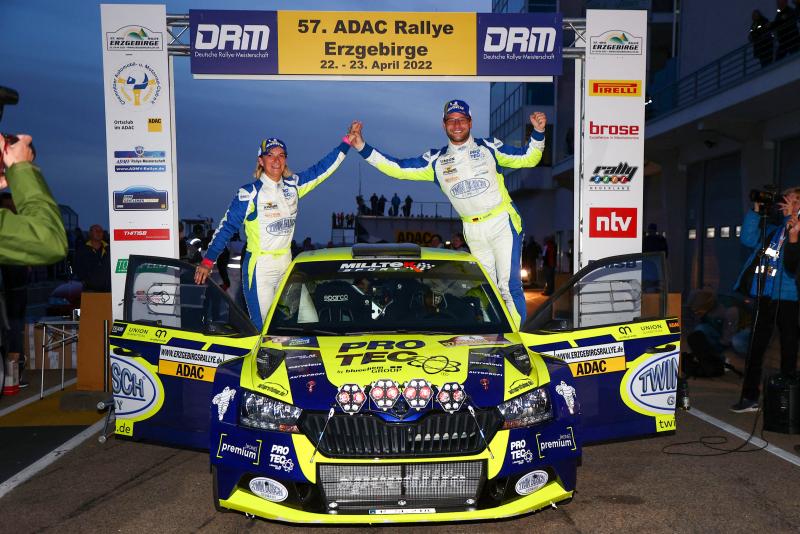 Der Plauener Philip Geipel gewann beim Saisonstart am Sachsenring nicht nur seine Heim-Rallye, sondern feierte gleichzeitig seinen ersten DRM-Sieg überhaupt. Zusammen mit Katrin Becker-Brugger hatte er im Skoda Fabia Rally2 Evo nach 106,7 Wertungskilometern mit dem hauchdünnen Vorsprung von neun Zehntelsekunden die Nase vorn. „Es war phänomenal. Mein erstes Podium in der DRM, dann gleich ein Sieg und das zu Hause vor heimischer Kulisse. Schöner kann man gar nicht gewinnen, auch wenn es natürlich unglaublich knapp war. In Sulingen will ich nachlegen, aber es wird bestimmt deutlich schwieriger. Besonders interessant werden die Wertungsprüfungen auf dem IVG-Gelände sein, wo man sich vorkommt wie in einem Irrgarten. Dieses ehemalige Militärareal ist das Aushängeschild der Rallye und macht den besonderen Charme in Sulingen aus“, so der 35-jährige Gesamtführende.
