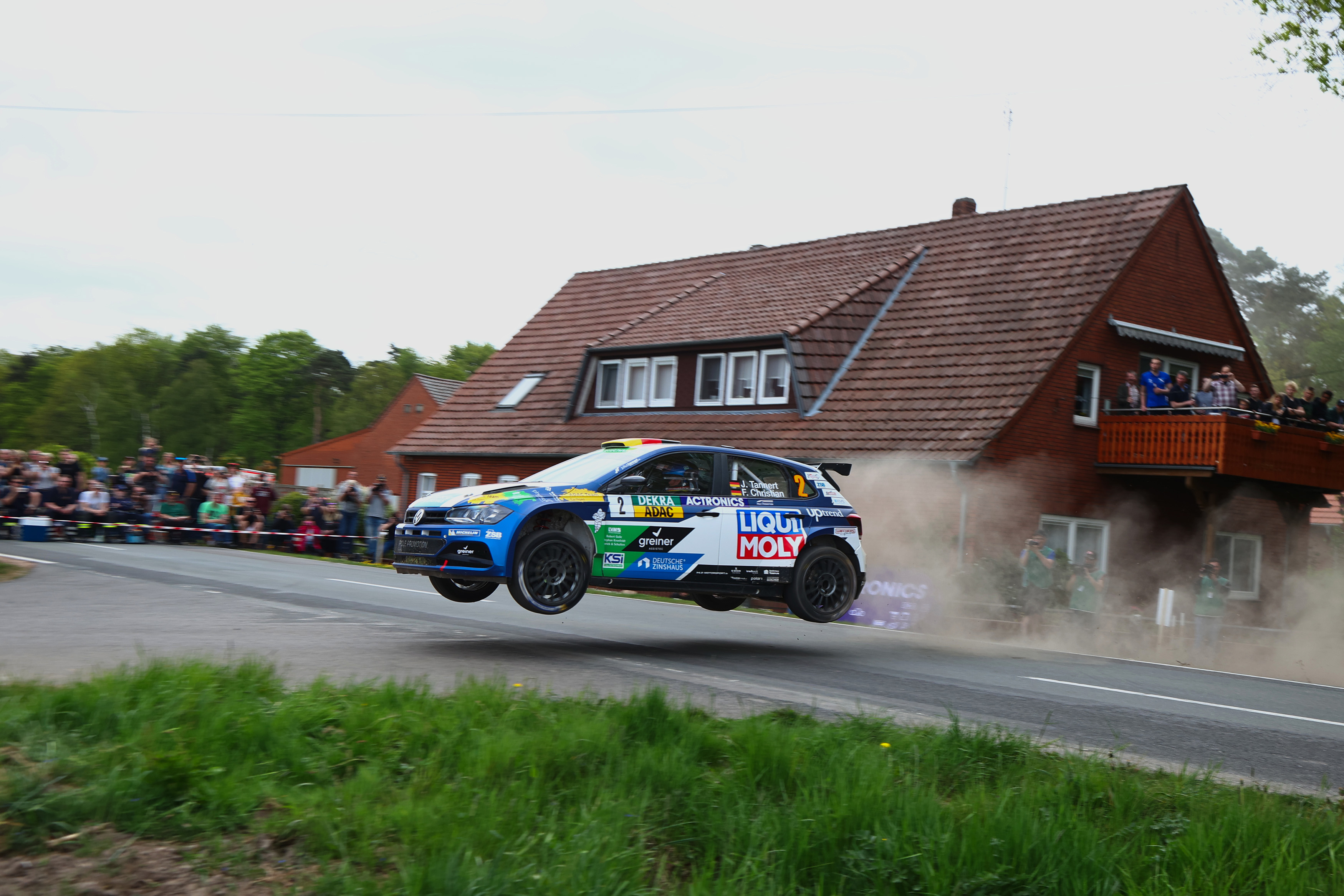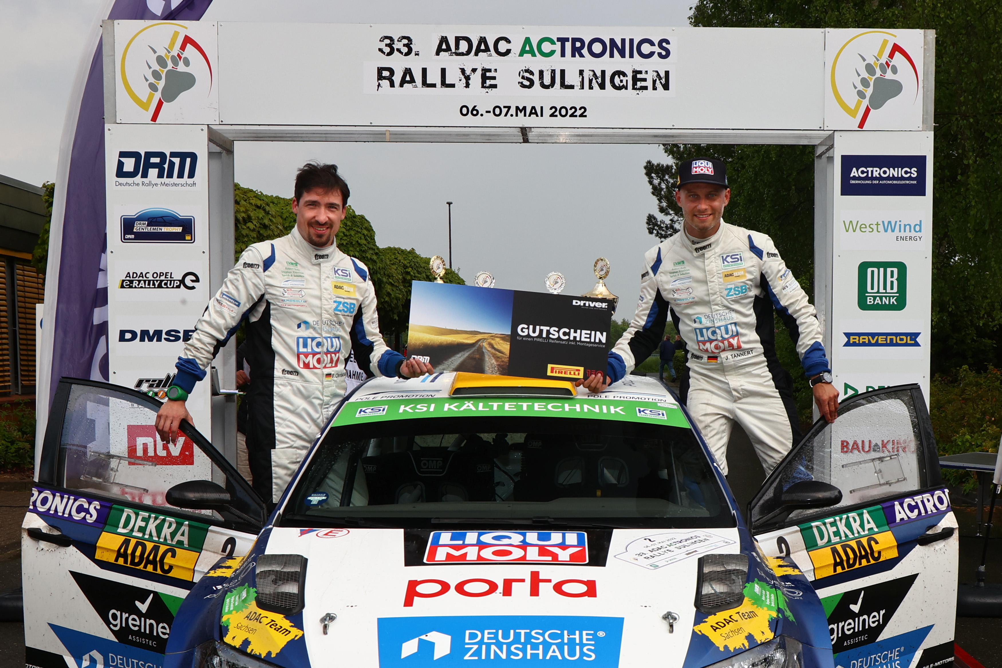 Hinter dem souveränen Sieger wurde der Positionskampf dramatisch. Dominik Dinkel und Pirmin Winklhofer lagen vor der 13. und letzten Wertungsprüfung zeitgleich mit Julius Tannert und Frank Christian auf Rang zwei. Doch Vizemeister Tannert warf im Regen von Sulingen alles in die Waagschale, nahm im Volkswagen Polo GTI R5 seinem Konkurrenten auf den letzten Kilometern 2,1 Sekunden ab und sicherte sich den zweiten Platz. „Es war für uns eine schwierige Rallye. Die erste Runde auf dem IVG-Gelände war wie Lotto spielen. Bei dem plötzlichen Regen beschlug die Scheibe, die Reifenwahl war falsch und wir haben viel Zeit verloren. In der zweiten Runde konnten wir Boden gut machen und haben in der letzten Prüfung Platz zwei erkämpft. Das war ein versöhnlicher Abschluss“, freute sich der Zwickauer.