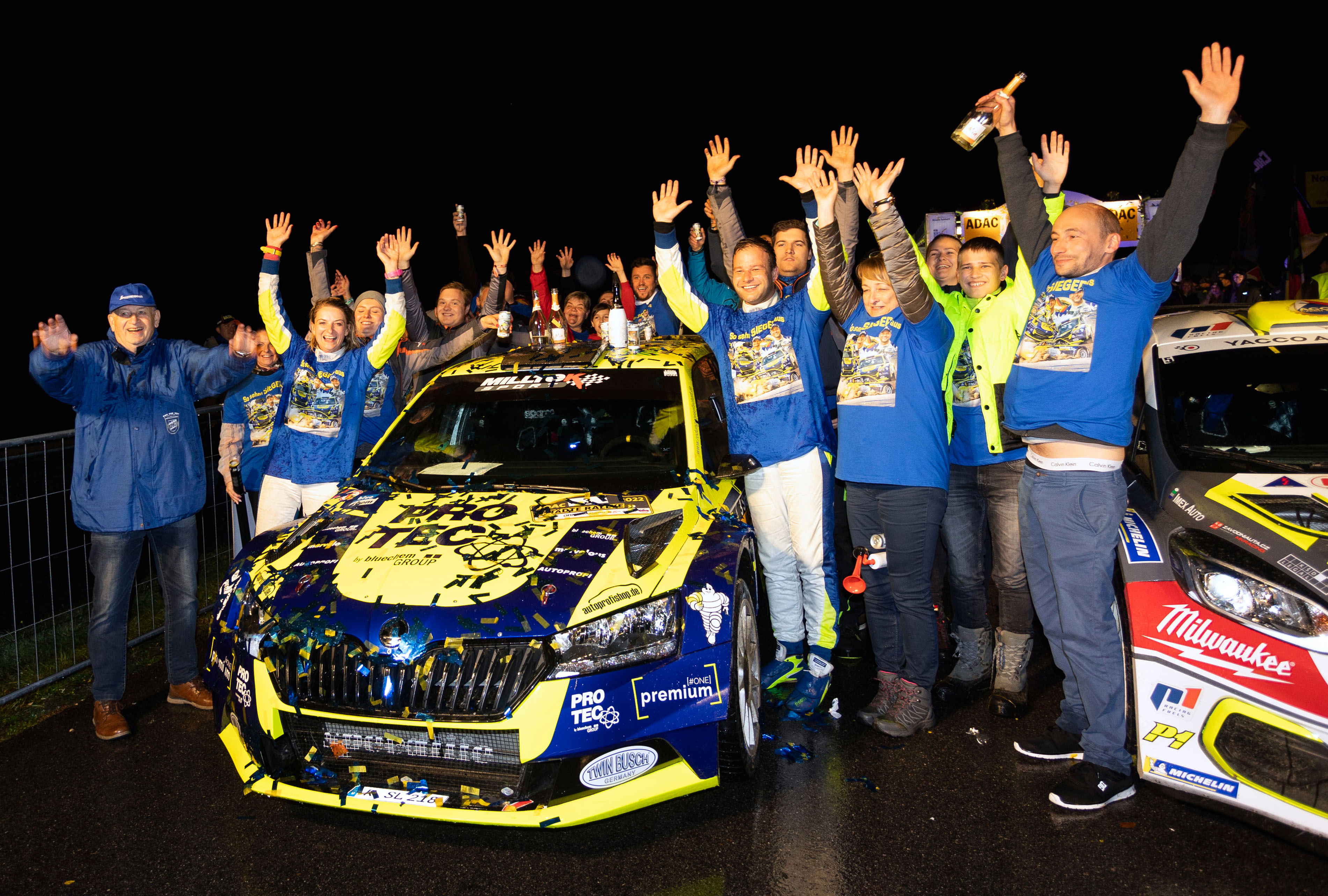 Bei dieser Dramaturgie ging die Leistung der beiden anderen deutschen Spitzenfahrer in der Top-Klasse fast unter. Dominik Dinkel und Pirmin Winklhofer machten im Ford Fiesta Rally2 als Zweite einen ganz starken Wettkampf und schrammten nur knapp am ersten Saisonsieg vorbei. „Ich habe am Freitag die ersten Prüfungen in Tschechien ein wenig verschlafen und dort Zeit liegen lassen. Heute hatten wir viel Aquaplaning. Da musste man abwägen, ob volles Risiko das Richtige ist. Ich hatte in der Meisterschaft keine Chance mehr, Philip nichts zu verlieren. Das hat man gemerkt“, erklärte Dominik Dinkel. Auch Julius Tannert, der Dritter wurde und den gleichen Rang in der Meisterschaft belegte, hatte eher auf Vorsicht gesetzt. „Die Prüfungen am Freitag waren anspruchsvoll und haben viel Spaß gemacht. Am Samstag hatten wir viel stehendes Wasser, schlechte Sicht und beschlagene Scheiben, eben alles, was man nicht braucht. Es war ein Kampf gegen die Elemente und der war verdammt hart“, so Tannert.