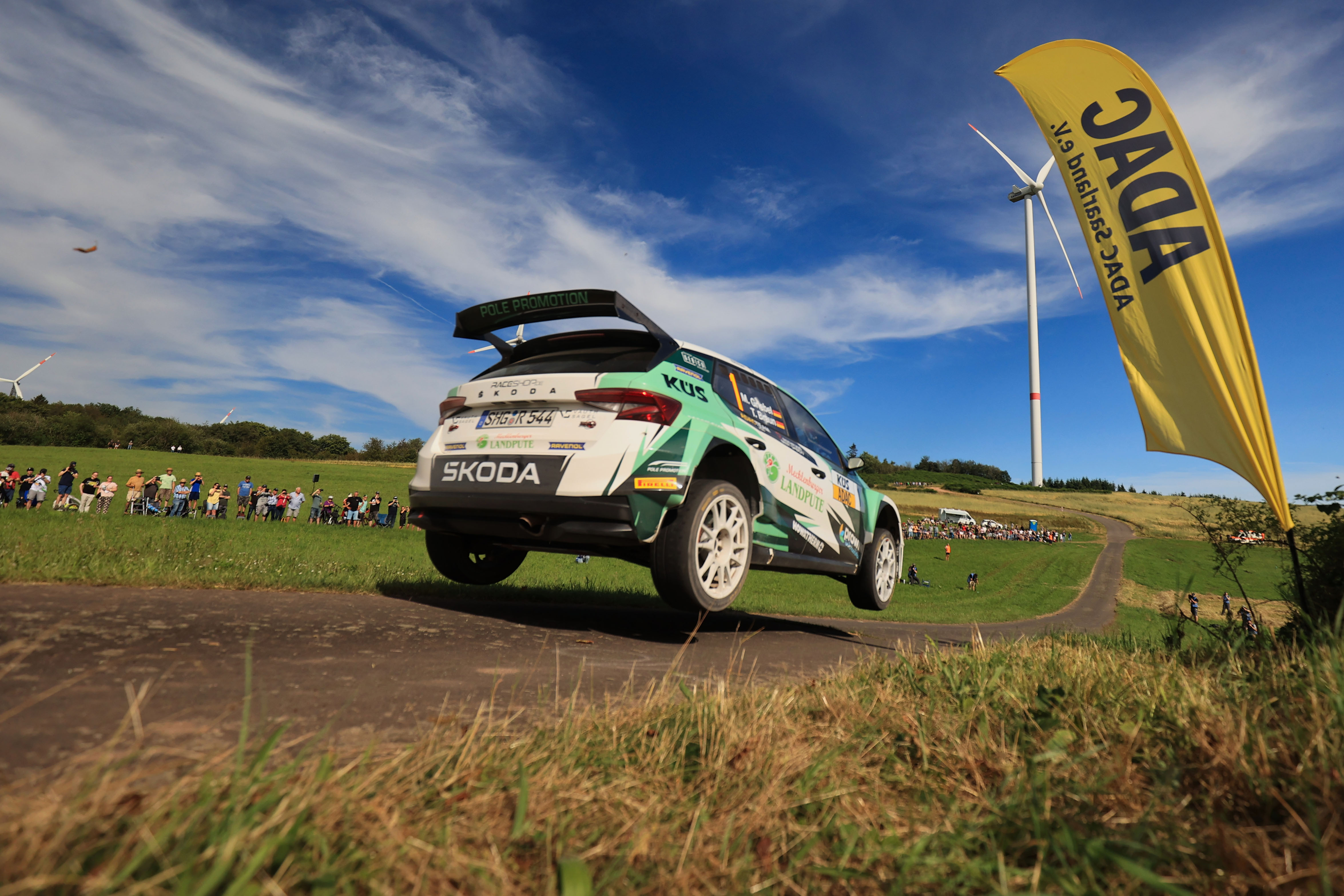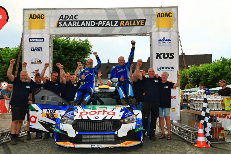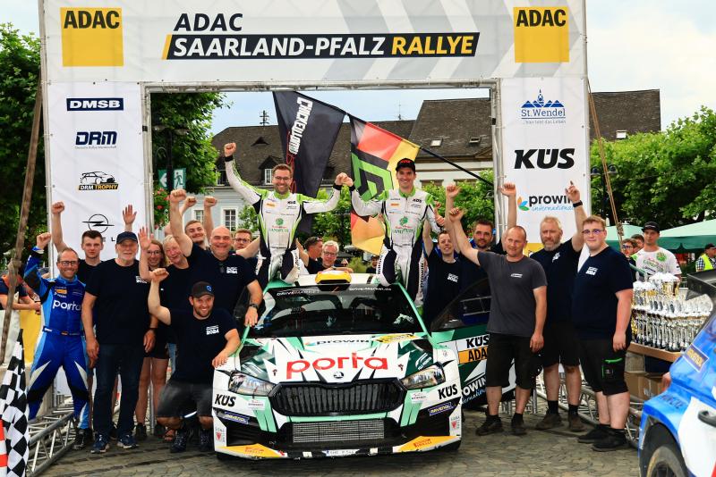 St. Wendel. Marijan Griebel hat seine Siegesserie bei der ADAC Saarland-Pfalz Rallye ausgebaut. Der Lokalmatador aus Hahnweiler war mit Beifahrer Tobias Braun erneut nicht zu stoppen und feierte vor heimischer Kulisse den vierten DRM-Sieg in Folge. Den Grundstein dazu hatte der aktuelle Deutsche Rallyemeister im Škoda Fabia RS Rally2 am Freitag gelegt, als er einen Vorsprung von über 20 Sekunden herausfuhr. Diesen verteidigte er am Samstag souverän und baute seine Tabellenführung weiter aus. „Es war eine schöne und anspruchsvolle Rallye, die bereits am Anfang durch den Plattfuß meines härtesten Konkurrenten Julius stark beeinflusst wurde. Es war aber nicht leicht, den Vorsprung zu halten, weil die Strecken sehr schwierig waren und Julius sehr schnelle Zeiten fuhr. Dieser Sieg war ein wichtiger Schritt in Richtung Meisterschaft, gewonnen ist aber noch nichts“, erklärte der 35-Jährige. Sein schärfster Rivale und Markenkollege Julius Tannert konnte mit seinem Co-Piloten Helmar Hinneberg den durch einen Reifenschaden verursachten Rückstand zwar verringern, den fehlerlosen Griebel aber nicht gefährden. Tannert: „Leider hatten wir gleich zu Beginn diesen unerklärlichen Reifenschaden, ohne etwas berührt zu haben. Davon abgesehen war unsere Pace sehr gut. Wir sind viele Bestzeiten gefahren und kamen etwas näher an Marijan heran. Es hat aber nicht gereicht, um ihn in seinem Wohnzimmer unter Druck zu setzen. Dazu ist er einfach zu clever.“ Platz drei belegten Dennis Rostek und Stefan Kopczyk (Škoda Fabia RS Rally2), Philip Geipel und Katrin Becker steuerten einen Toyota GR Yaris Rally2 bei ihrem zweiten Saisonstart auf Rang vier. Die Fahrer-Kombination Nico Knacker / Thomas Puls wurde im Hyundai i20N Rally2 nach einer starken Leistung Fünfter.
