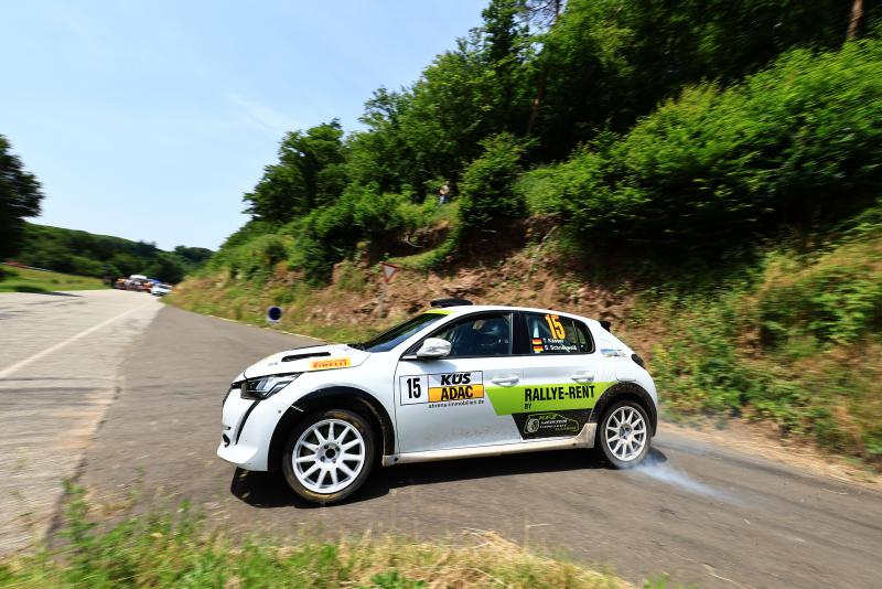 Tom Kässer und Stephan Schneeweiß haben bei der ADAC Saarland-Pfalz Rallye im Peugeot 208 Rally4 ihr Meisterstück gemacht. Mit dem fünften Erfolg hintereinander wurden sie trotz zweier noch ausstehender Läufe vorzeitig Gesamtsieger in der DRM2-Wertung. „Wir hatten nach dem Ausfall von Max Schumann mehr als 20 Sekunden Vorsprung, haben den aber in WP 10 auch wegen eines Frühstarts fast wieder verspielt. Dann gab es zwei Möglichkeiten: Sichere Punkte für die Meisterschaft zu holen oder schon jetzt alles klarzumachen. Wir haben uns dann für Letzteres entschieden“, verriet Tom Kässer. Mit einem Rückstand von 11,8 Sekunden folgte das Fahrer-Duo Jonas Ertz / Maresa Lade im Opel Corsa Rally4 auf Rang zwei und freute sich nach einigen Rückschlägen über diesen Podiumsplatz: „Es war sehr heiß im Auto und extrem anstrengend auf den teilweise sehr schnellen Prüfungen“, so Jonas Ertz. „Wir haben aber keine Fehler gemacht und hatten endlich auch keine technischen Probleme. Dafür haben wir jetzt schon alle Saunagänge dieses Jahres hinter uns.“ Auch ihre Markenkollegen Patrick Pusch und Fabian Hoese waren mit Rang drei zufrieden. „Viele Konkurrenten sind gestrauchelt. Wir haben ein wenig Gas rausgenommen und sind durchgekommen“, fasste Patrick Pusch trocken zusammen. Position vier ging mit Konstantin Keil und Stefanie Fritzensmeier ebenfalls an eine Opel Corsa-Besatzung. Das dänische Duo Lasse Karlshøj / Ole Frederiksen wurde im Peugeot 208 Rally4 Fünfter.