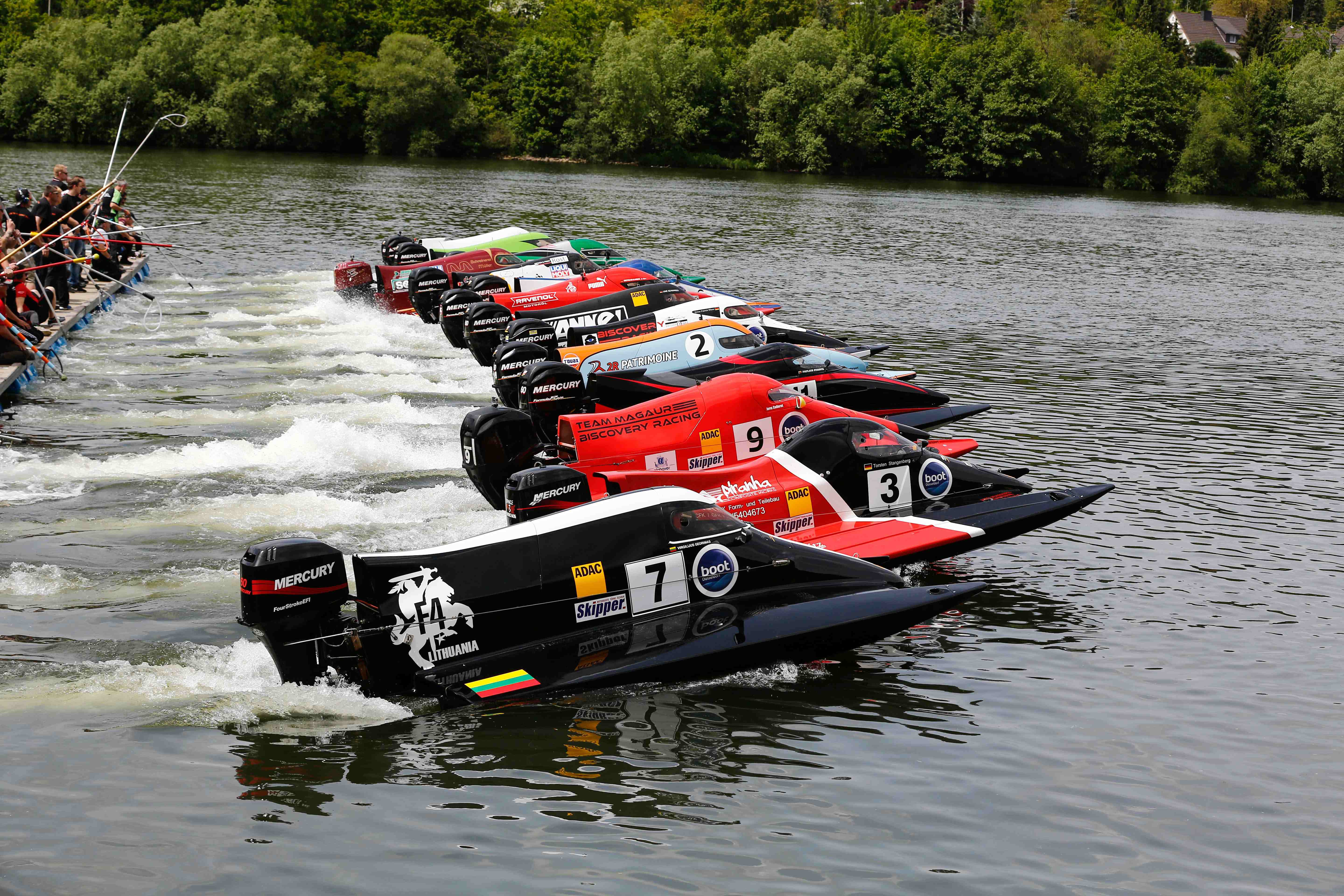In einer bunten Mischung aus "jungen Wilden" und routinierten Piloten konnten die erfahrenen Teilnehmer wie Patrick Wiese (Bondorf), Drittplatzierter des ADAC Motorboot Masters 2015, Uwe Brettschneider (Berlin), Vize-Champion des vergangenen Jahres, oder auch Uwe Schwarick auf ihre große Erfahrung bauen. Brettschneider belegte Platz fünf hinter Wiese, der an diesem Wochenende "prominenten" Besuch hatte: Mike Szymura, der ihn in dieser Saison mit seinem Know-how unterstützt. Der 22-jährige Szymura, Förderfahrer der ADAC Stiftung Sport, gewann das ADAC Motorboot Masters 2014 und ist 2016 international in der Formel 1 unterwegs. Lokalmatador Christian Groß (Löf) belegte bei seinem Aufstieg in das ADAC Motorboot Masters Rang zehn in der Gesamtwertung.