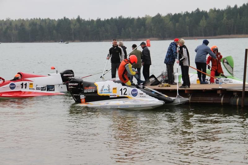 Das erste der beiden Sprintrennen gewann der ungarische Gaststarter Aron Tabori, der aufgrund seines Status allerdings keine Punkte für die Meisterschaft sammeln durfte. Somit erhielt auch in diesem Lauf Maniewski die Höchstpunktzahl. Das erste Sprintrennen wurde nach einem technischen Defekt am Boot des Schweden Jesper Forss zwischenzeitlich unterbrochen und später wieder aufgenommen. Polesetter Mike Szymura musste sich am Ende mit Rang drei begnügen. Er verlor Platz eins am Start gegen Tabori und Platz zwei nach dem Re-Start an Maniewski. Hinter Szymura beleten Edgaras Riabko, Nikita Lijcs, Uwe Brettschneider, Attila Horvath und Neuling Frederick Bastin die weiteren Plätze.