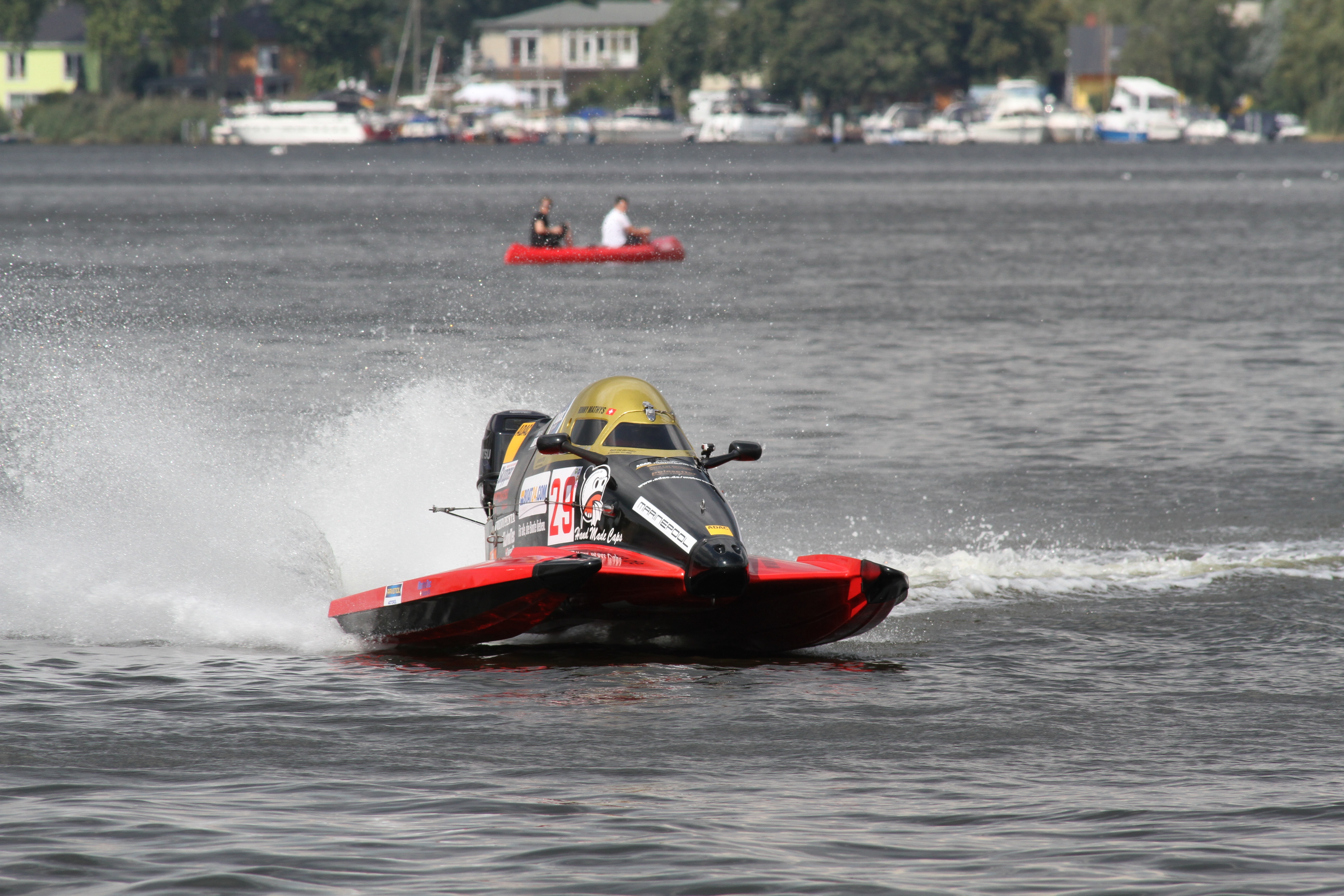 Im abschließenden zweiten Hauptrennen stahl Ronny Mathys (30, Schweiz) dem deutschen Top-Trio die Show. Der Schweizer Serienneuling, zuletzt dreifacher Sieger in Kriebstein, katapultierte sich mit einem Traumstart an die Spitze des Feldes und fuhr seinen vierten Saisonsieg im ADAC Motorboot Cup ein. Er distanzierte Stilz um 2,508 Sekunden. Schäfer lag in der Startphase hinter Tietz nur auf Rang vier, konnte ihn aber nach wenigen Runden überholen und sich dadurch seinen dritten Podiumsplatz in Berlin holen.