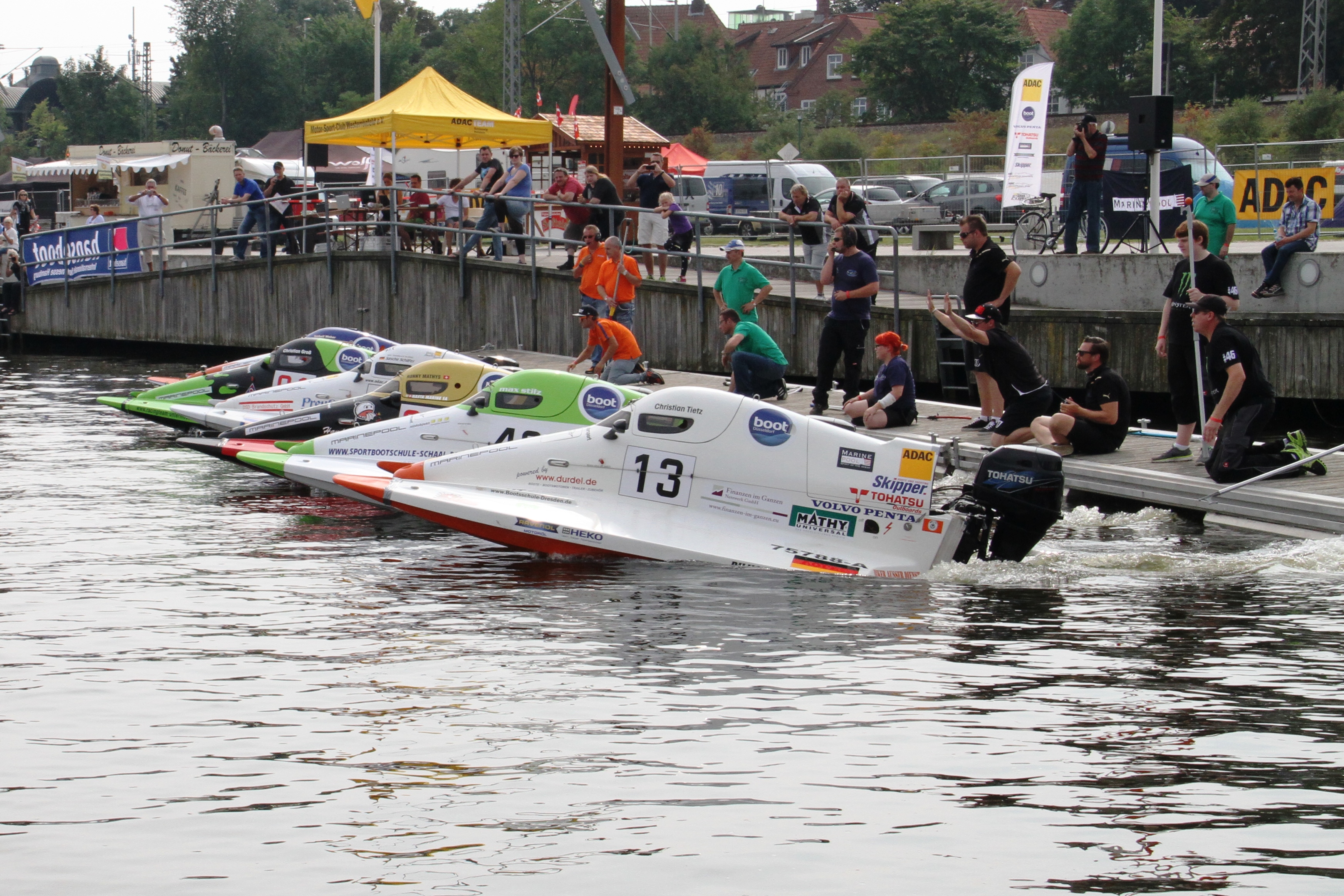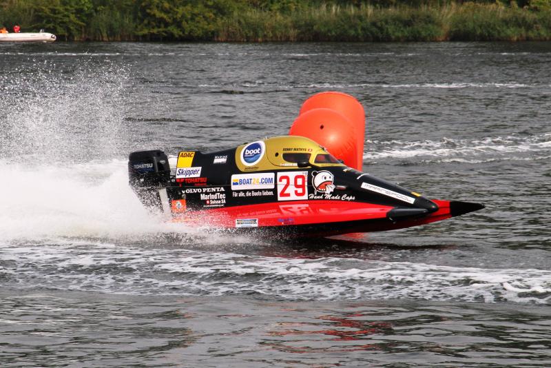 Neuling Ronny Mathys (30, Schweiz) gelangen auf einem anspruchsvollen Sieben-Bojen-Kurs in Rendsburg zwei Siege. Er konnte das zweite Sprint- und das erste Hauptrennen für sich entscheiden. Da Mathys in den beiden anderen Läufen jeweils Rang zwei belegte, war er der große Gewinner dieses Rennwochenendes. In der Gesamtwertung verbesserte sich Mathys vom vierten auf den zweiten Platz. Er ist jetzt mit 52 Punkten Rückstand (ein Sieg in einem Hauptrennen gibt 40 Punkte) auf Schäfer der erste Verfolger des Gesamtführenden im ADAC Motorboot Cup.
