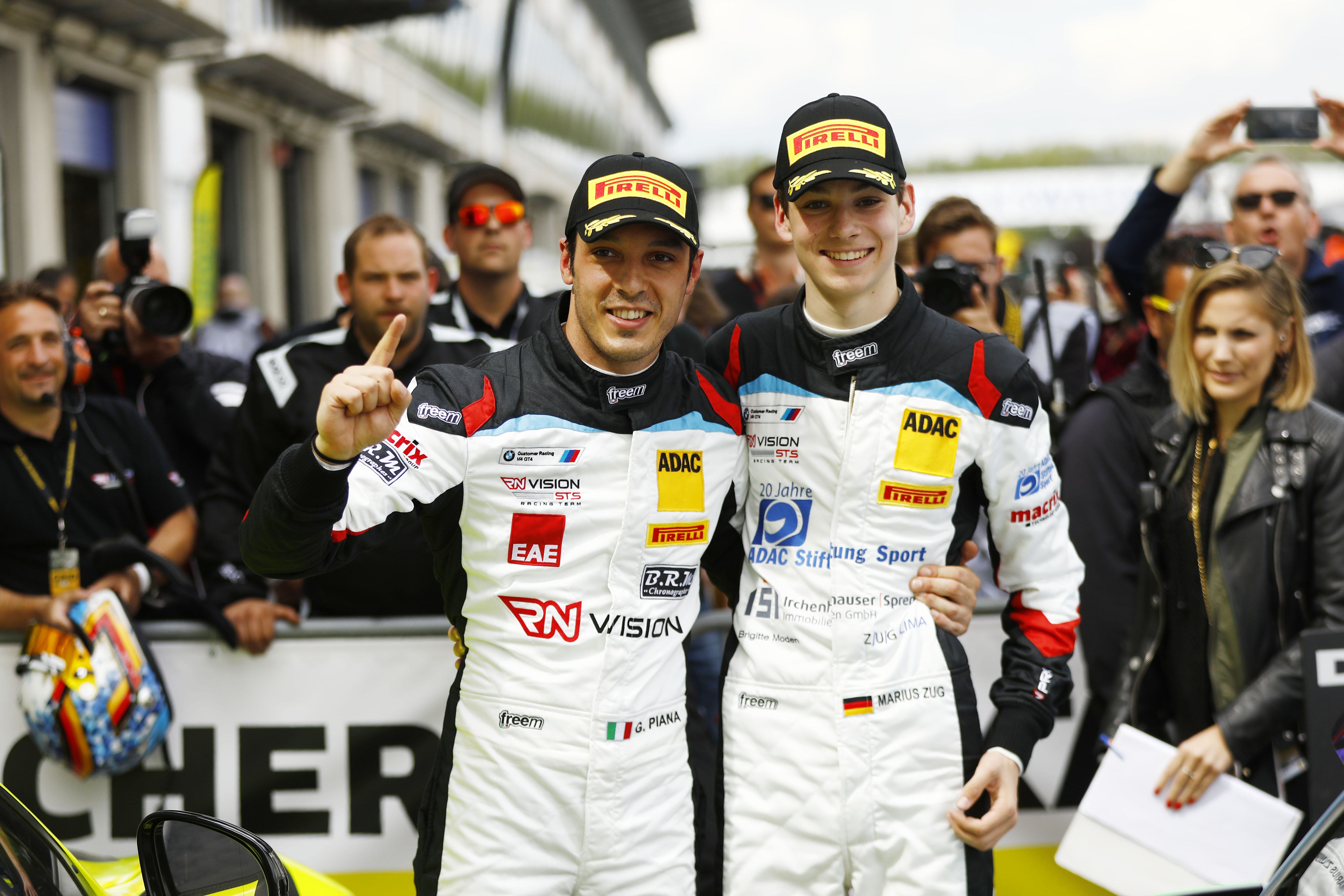 Rang eins in der Gesamtwertung für Marius Zug (r.) und seinen Teamkollegen Gabriele Piana in der ADAC GT4 Germany