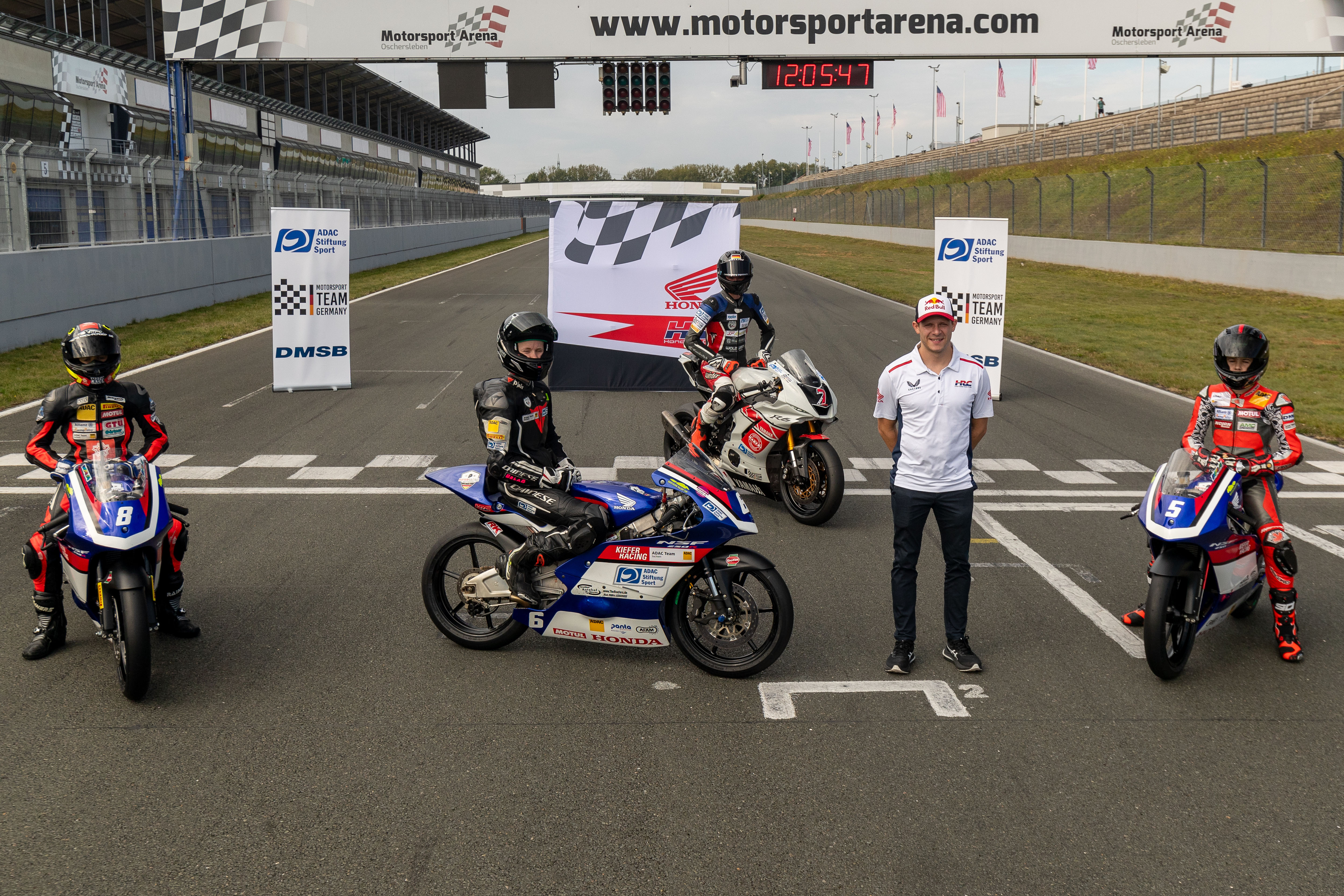 Oschersleben – In der Motorsport Arena Oschersleben fand am 23. September 2024 wieder ein Kadertraining im Rahmen des Nachwuchs-Förderprogramms der ADAC Stiftung Sport unter der Leitung von Stefan Bradl statt. Organisiert vom Motorsport Team Germany, das von der Stiftung gemeinsam mit dem Deutschen Motor Sport Bund, DMSB, vor zwei Jahren gegründet wurde, trainierten junge deutsche Motorrad-Rennsportler unter Anleitung des Ex-Motorradweltmeisters. Honda Deutschland unterstützte das Kadertraining des Motorsport Team Germany dabei auch in diesem Jahr wieder mit vier NSF 250R Moto3 Rennmotorrädern und die Motorsport Arena Oschersleben stellte die Rennstrecke mit entsprechendem Personal kostenlos zur Verfügung.