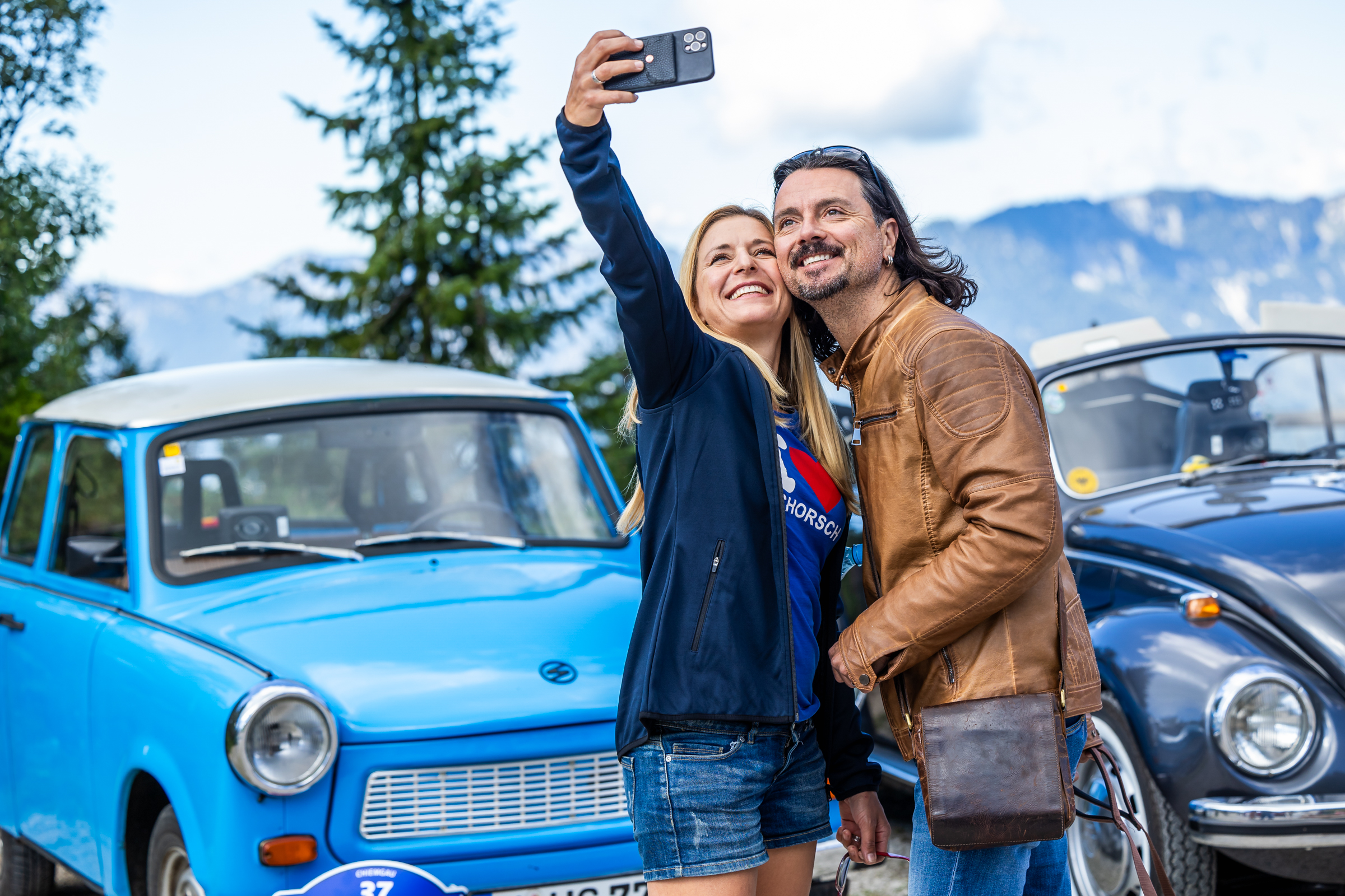 (V. l. n. r.): Bernd Schneider und Nicole Oehm-Schneider (2. Platz), Prof. Dr. Mario Theissen (ADAC Klassik Referent), Hans-Jürgen Lux und Jens Richter (Platz 1), Georg und Anneliese Lindner (Platz 3), Herbert Reiter (Leiter der Tourist Information Aschau)