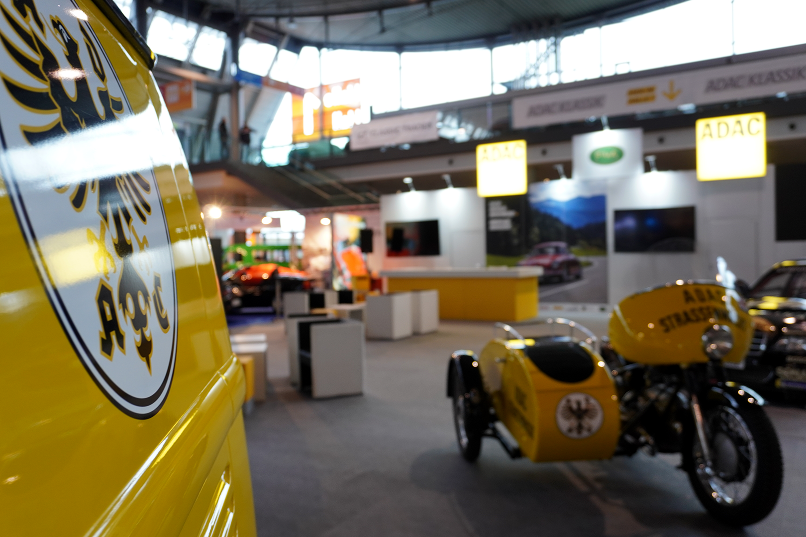 Ein Highlight am Stand von ADAC Klassik ist ein original ADAC Straßenwacht-Gespann von 1954