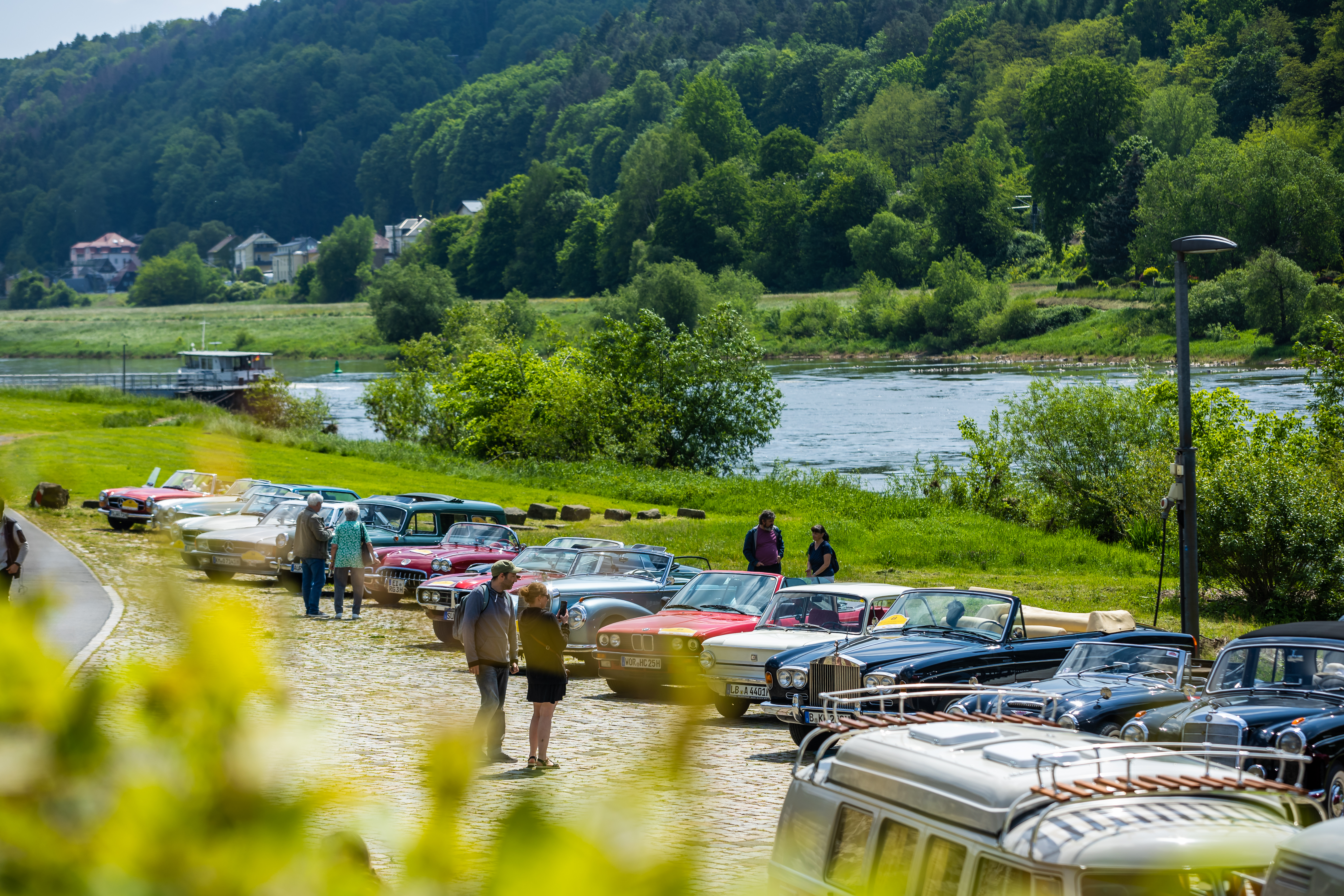 Oldtimer hautnah: Oldtimer-Enthusiasten nutzen die Gelegenheit das „rollende Museum“ aus nächster Nähe zu erleben