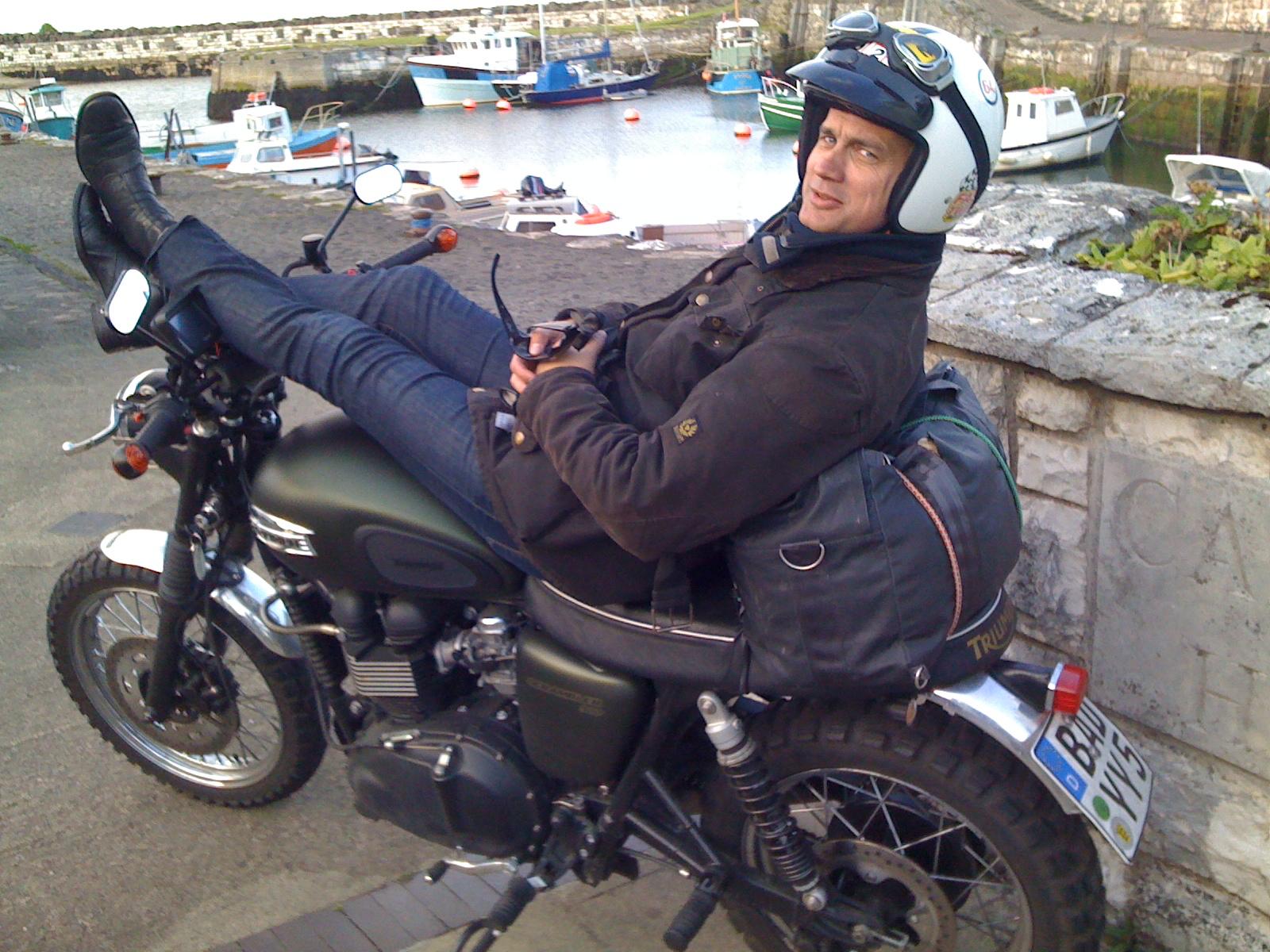 Prominenter Biker: Ralf Bauer nahm mit seiner Triumph Scrambler erstmals an der ADAC Oldtimer-Wanderung für Motorräder teil