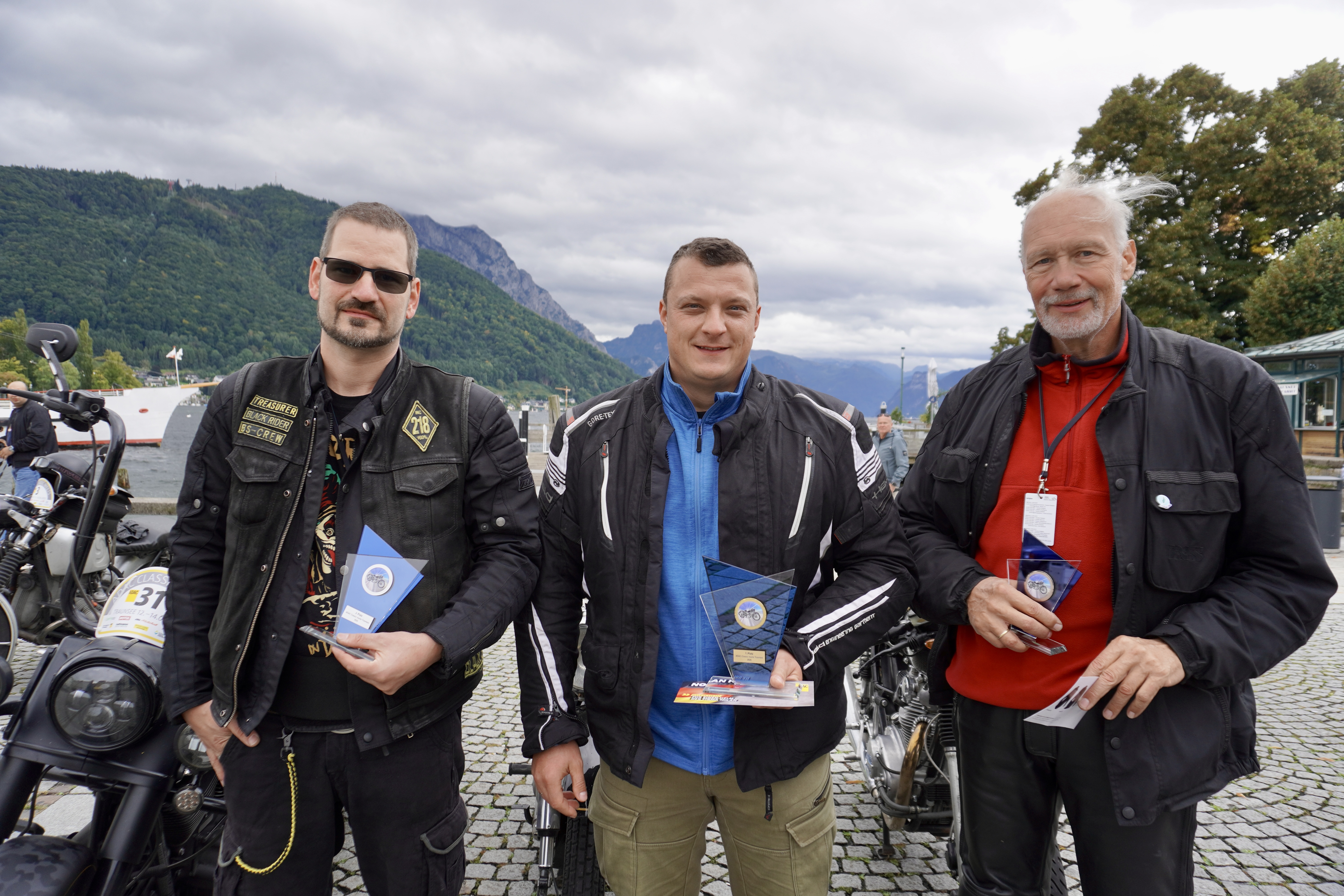 Die Sieger der ADAC Classic meets Traunsee 2025 (v. l. n. r.): Andreas Buch (Platz 2), Timo Mölle (Platz 1) und Bernhard Wölker (Platz 3)