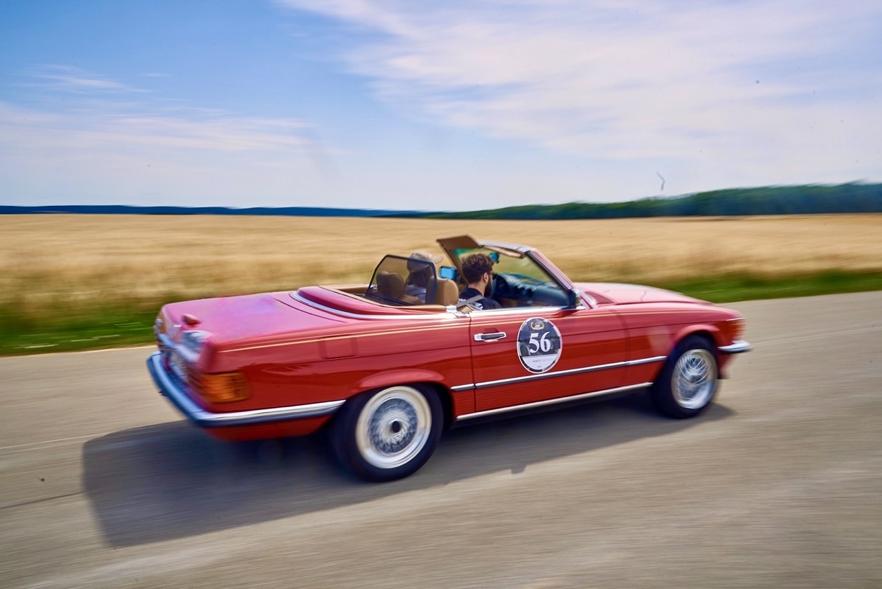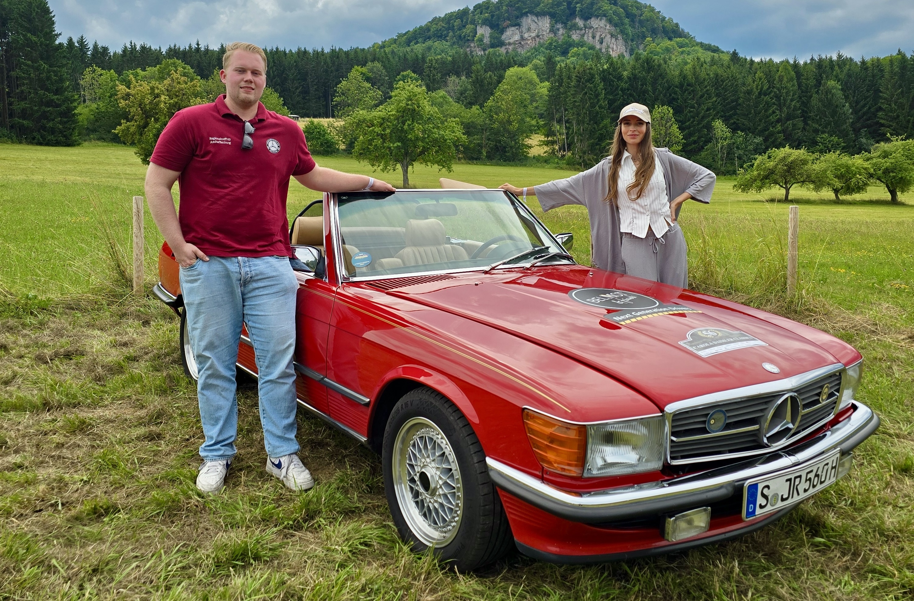 „Next Generation Driver – U30“: Herzstück des Nachwuchsprojekts ist der feuerrote „JR“, ein Mercedes-Benz 560 SL (R107), der unter den Mitgliedern bis 30 Jahre für jeweils drei Monate verlost wird. © Mercedes-Benz R/C 107 SL-Club Deutschland e.V.
